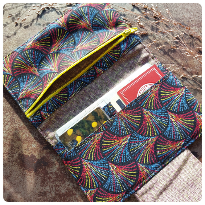 Portefeuille à cartes et portemonnaie compact en tissu – fait main
