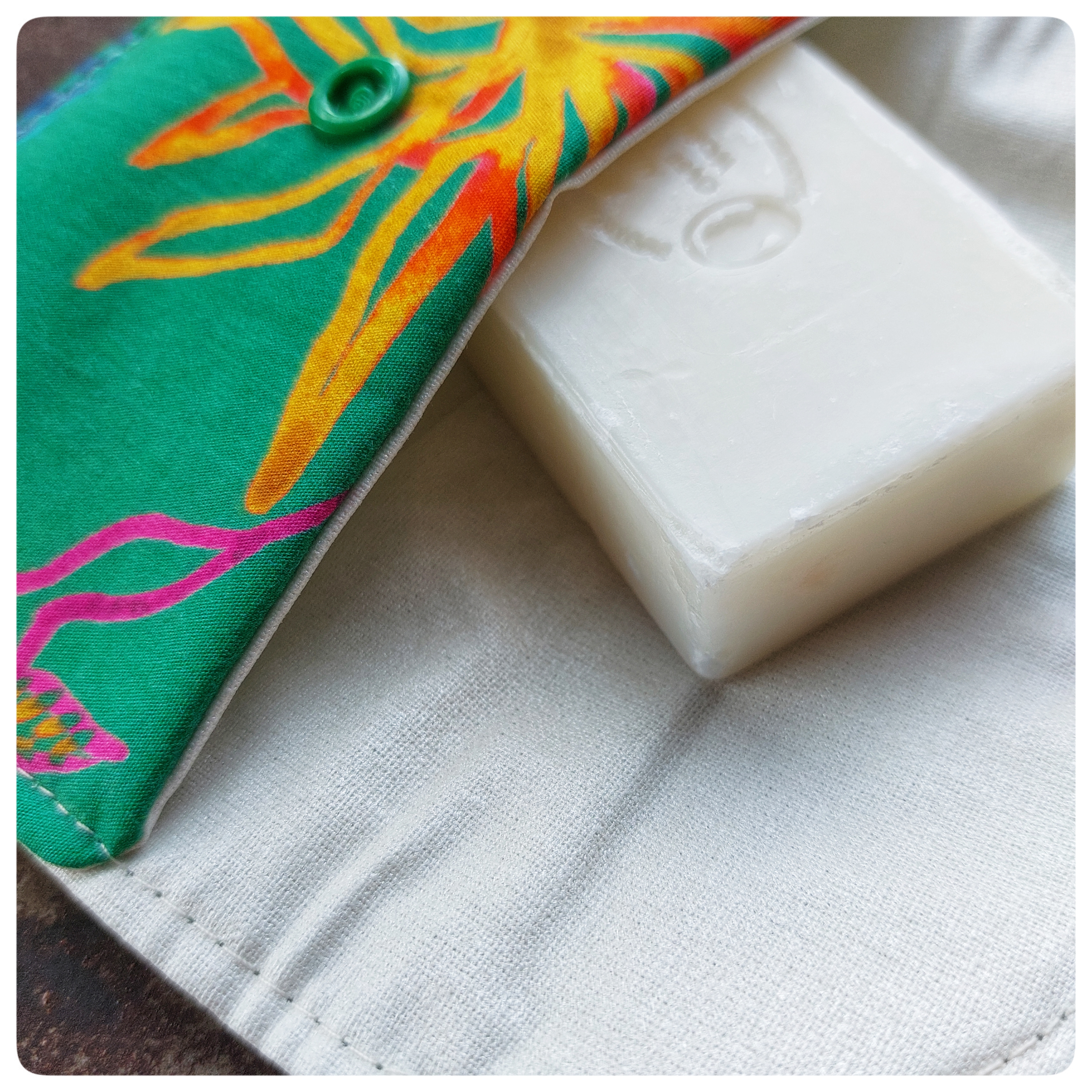 Pochette à savon tissu coton vert