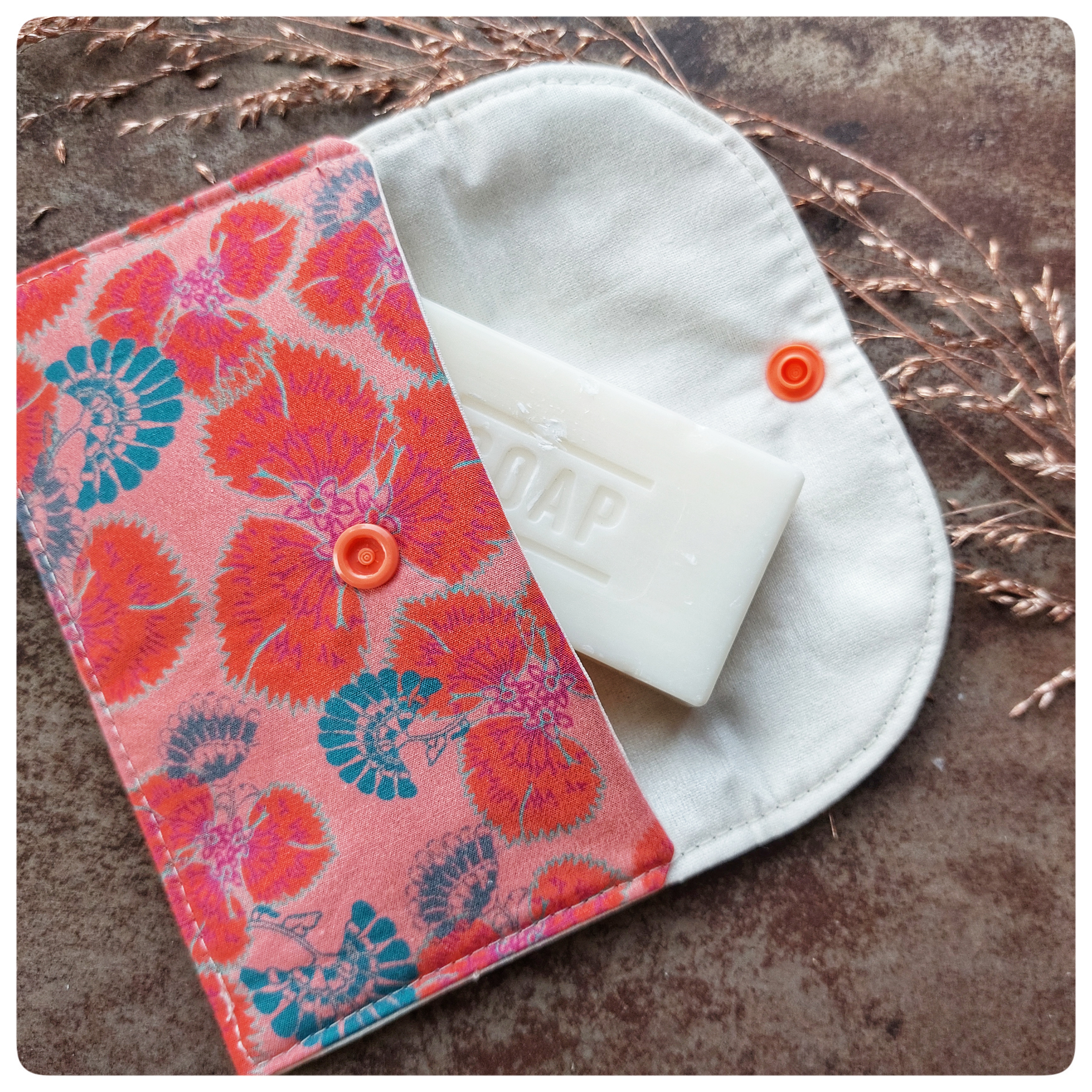 Pochette à savon tissu corail
