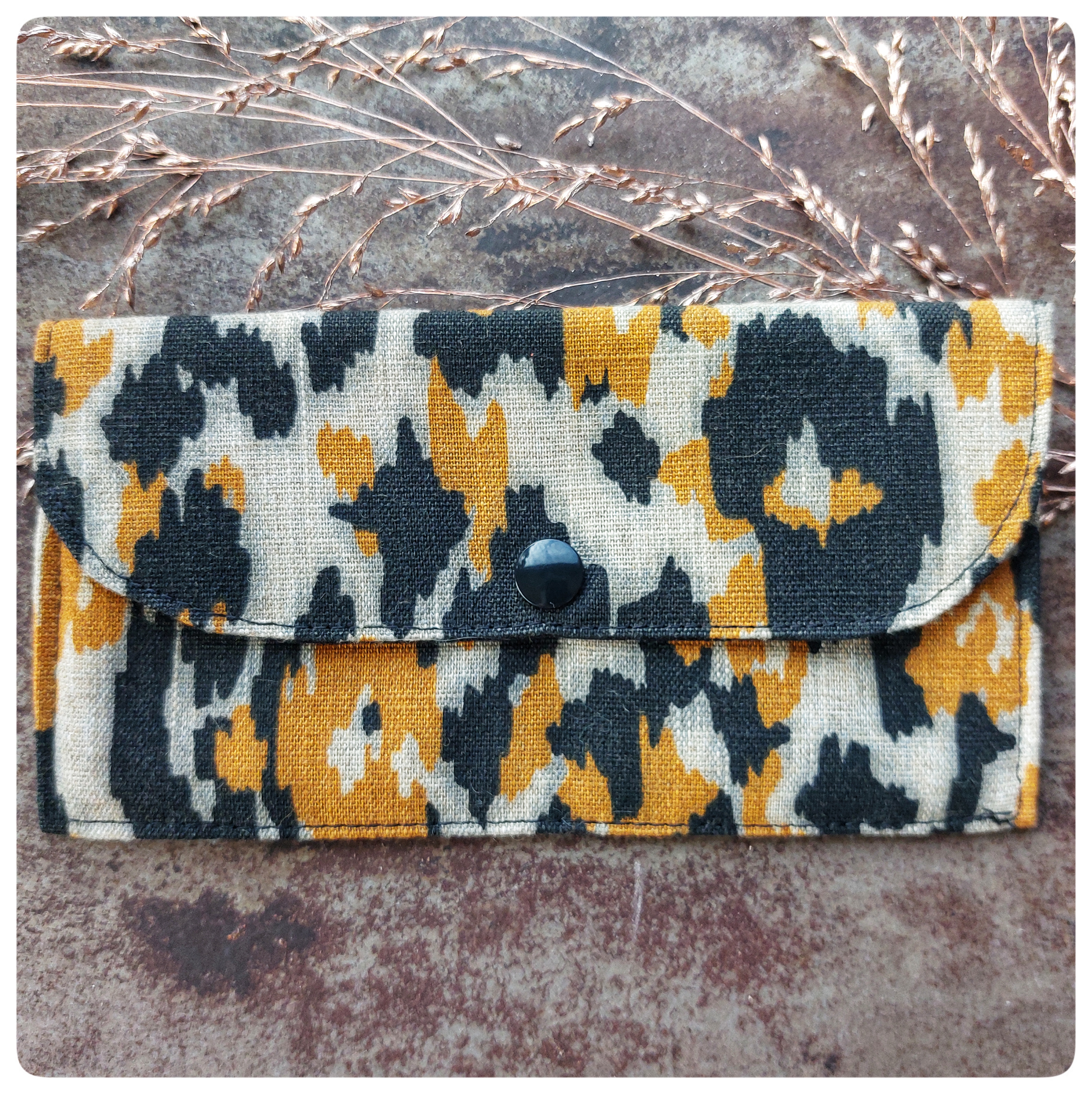 Pochette rectangulaire TISSU LEOPARD JAUNE NOIR