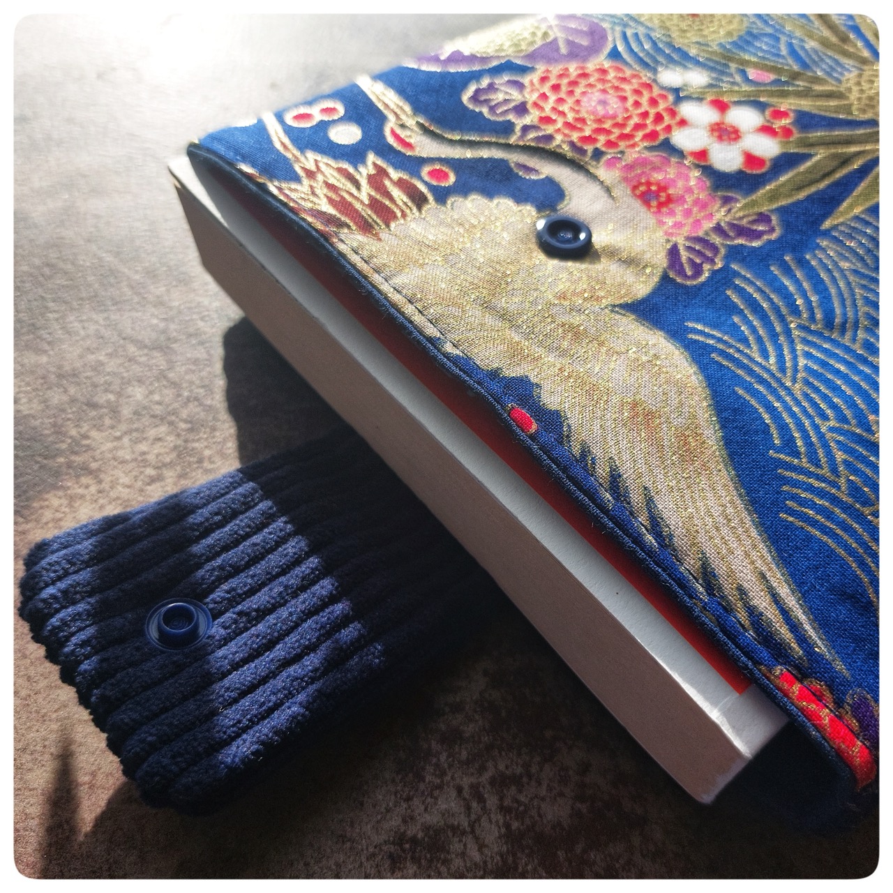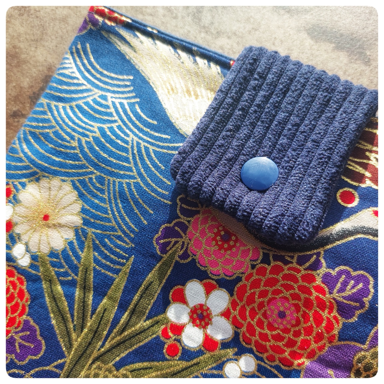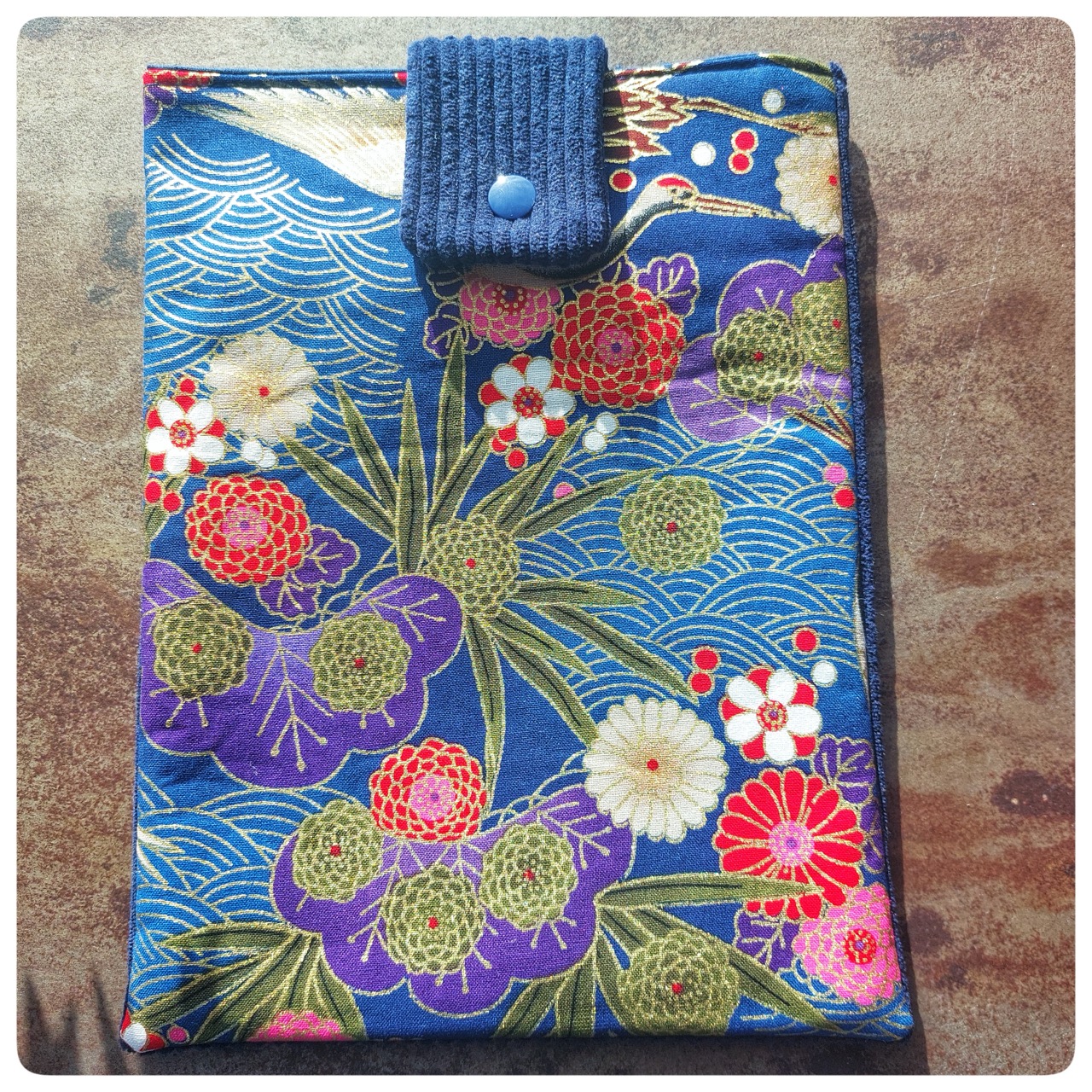 Pochette livre tissu japonais fleuri bleu