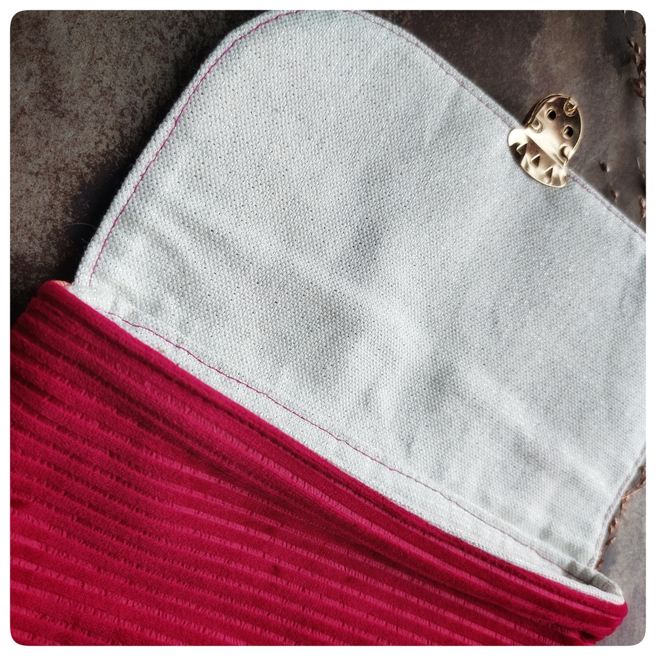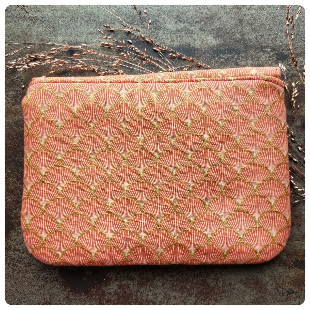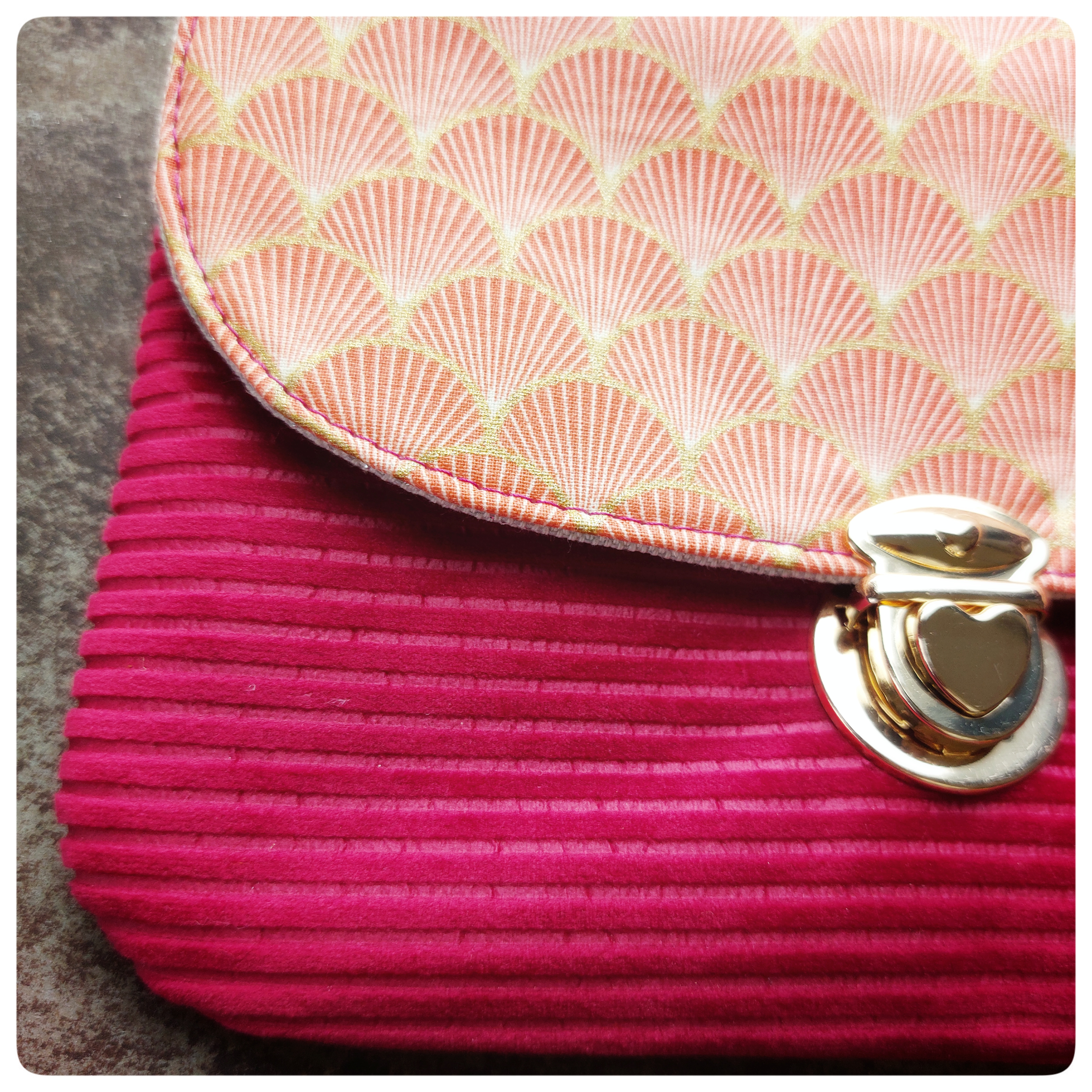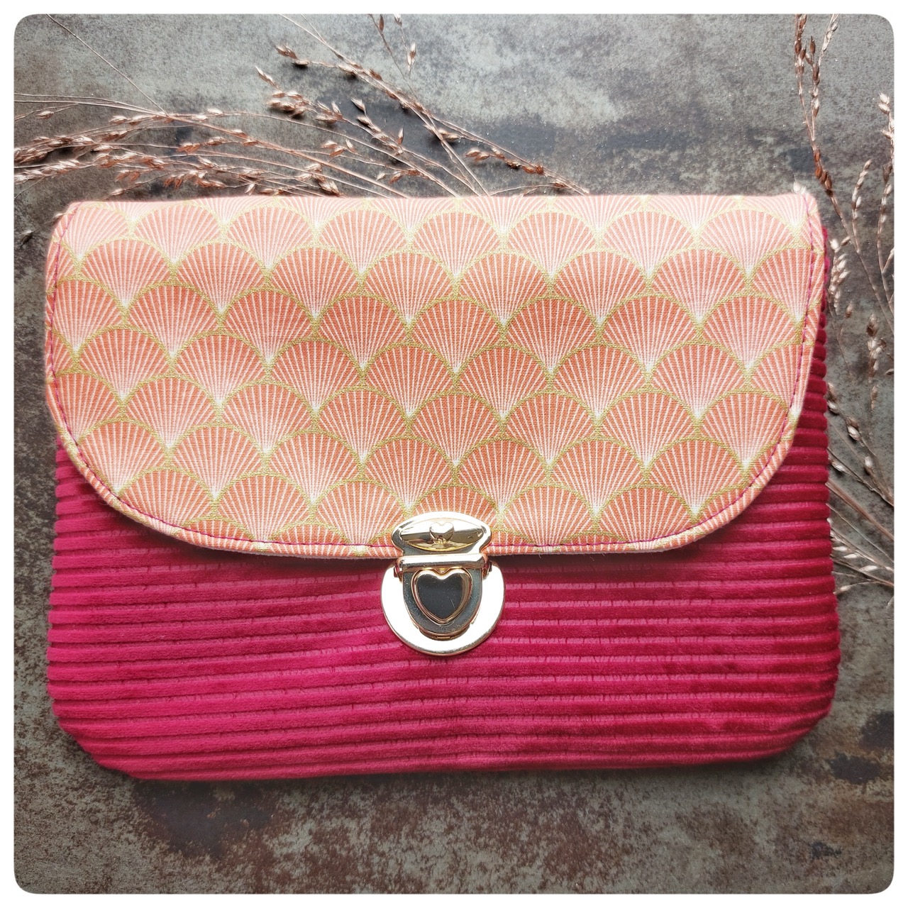Pochette à fermoir cartable velours rose et tissu japonais orange
