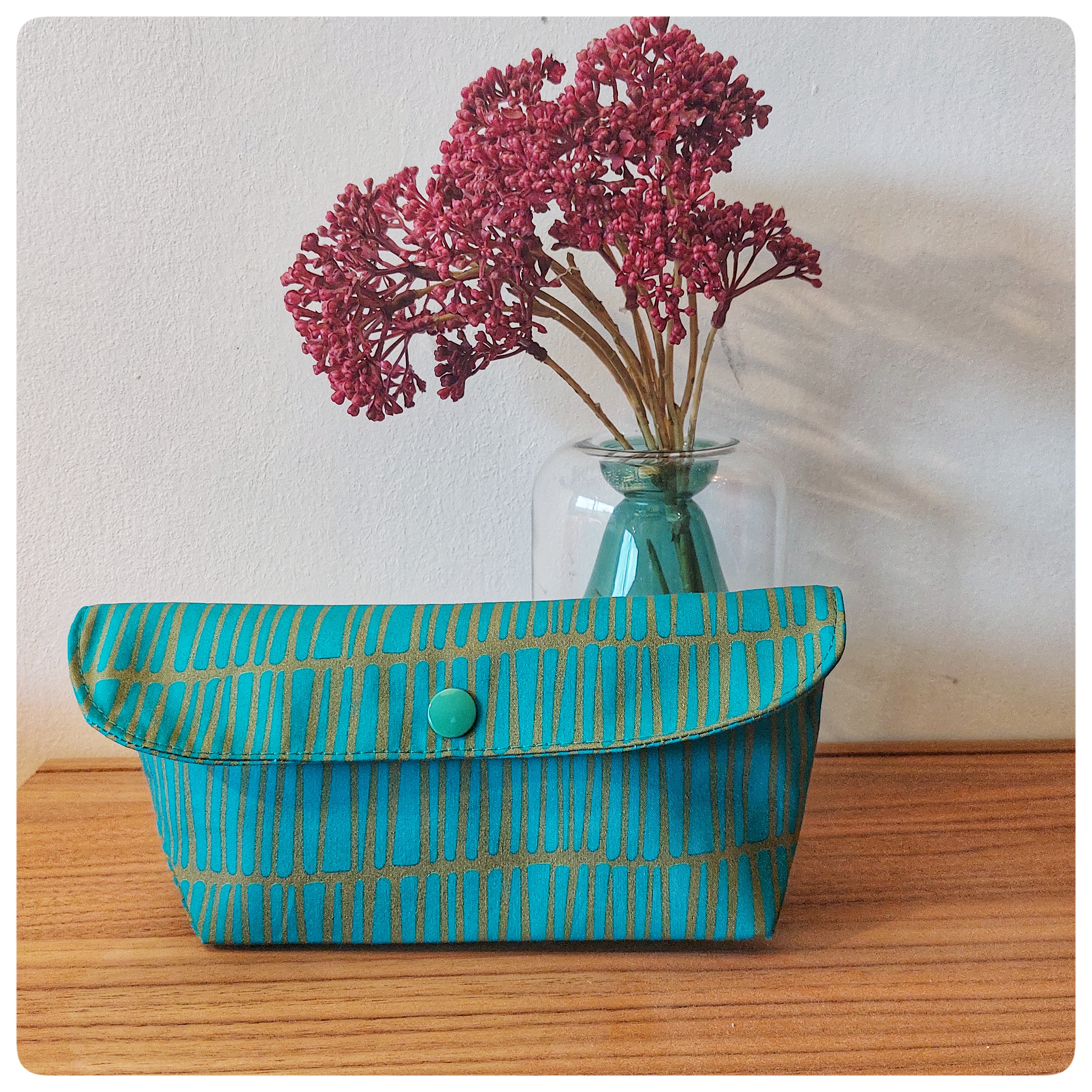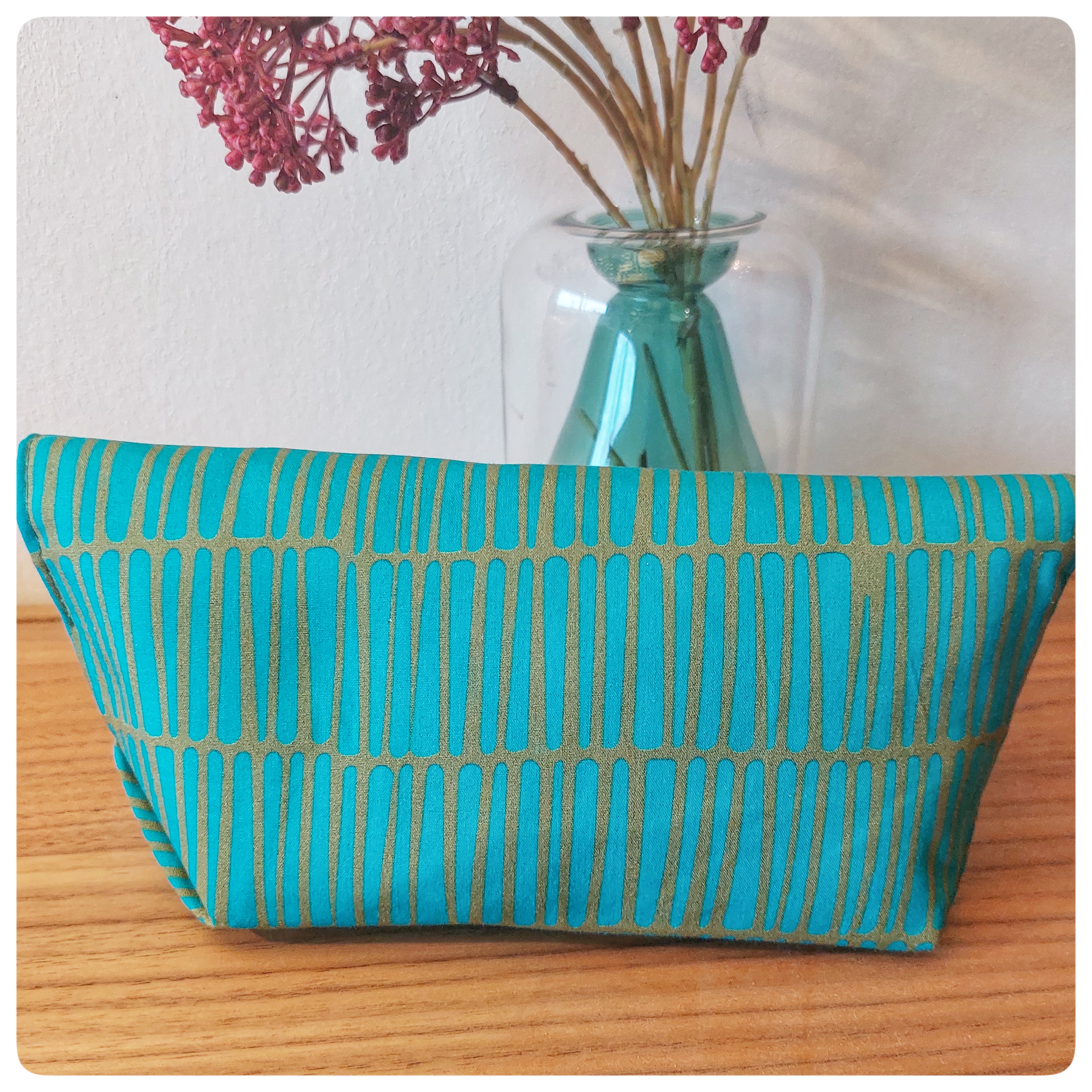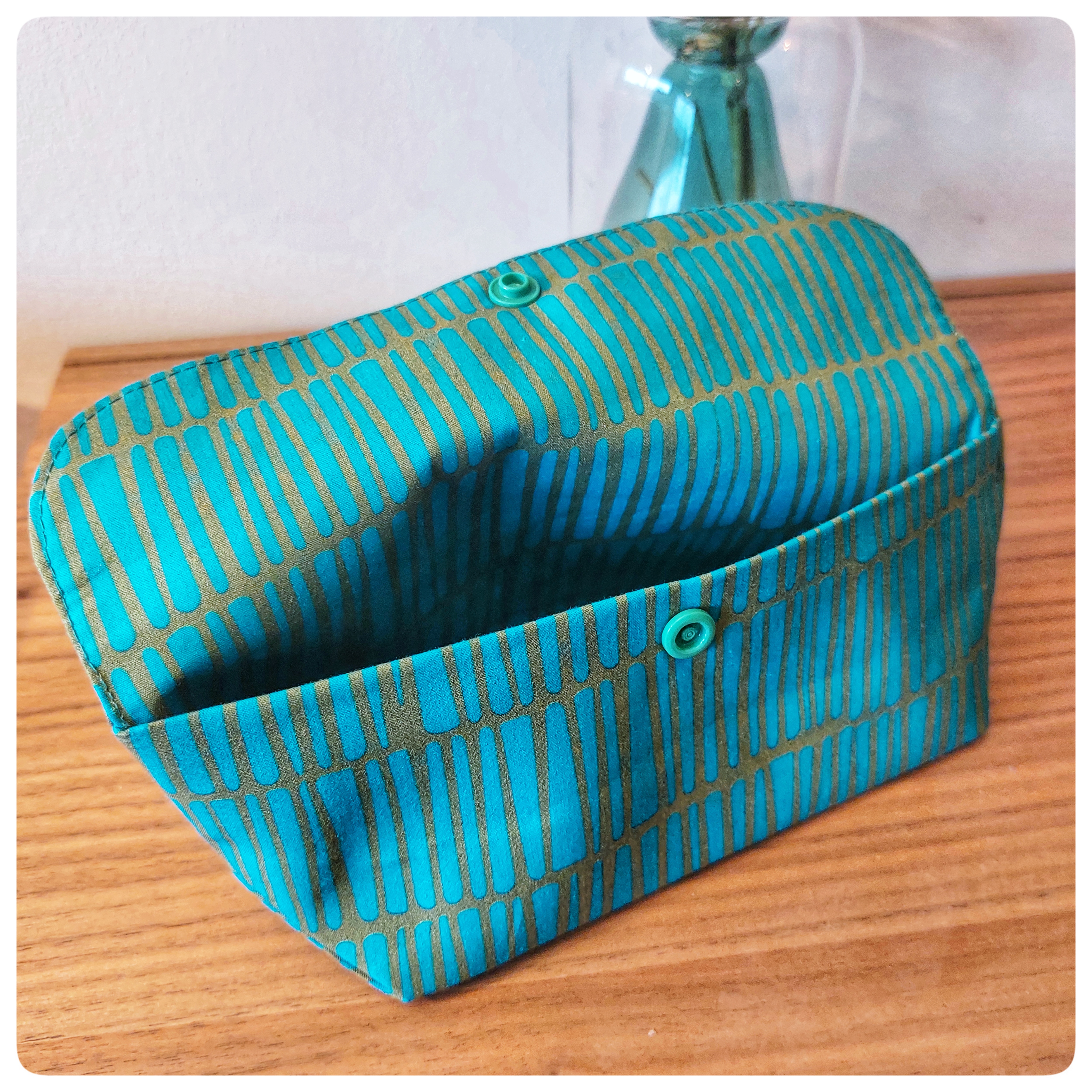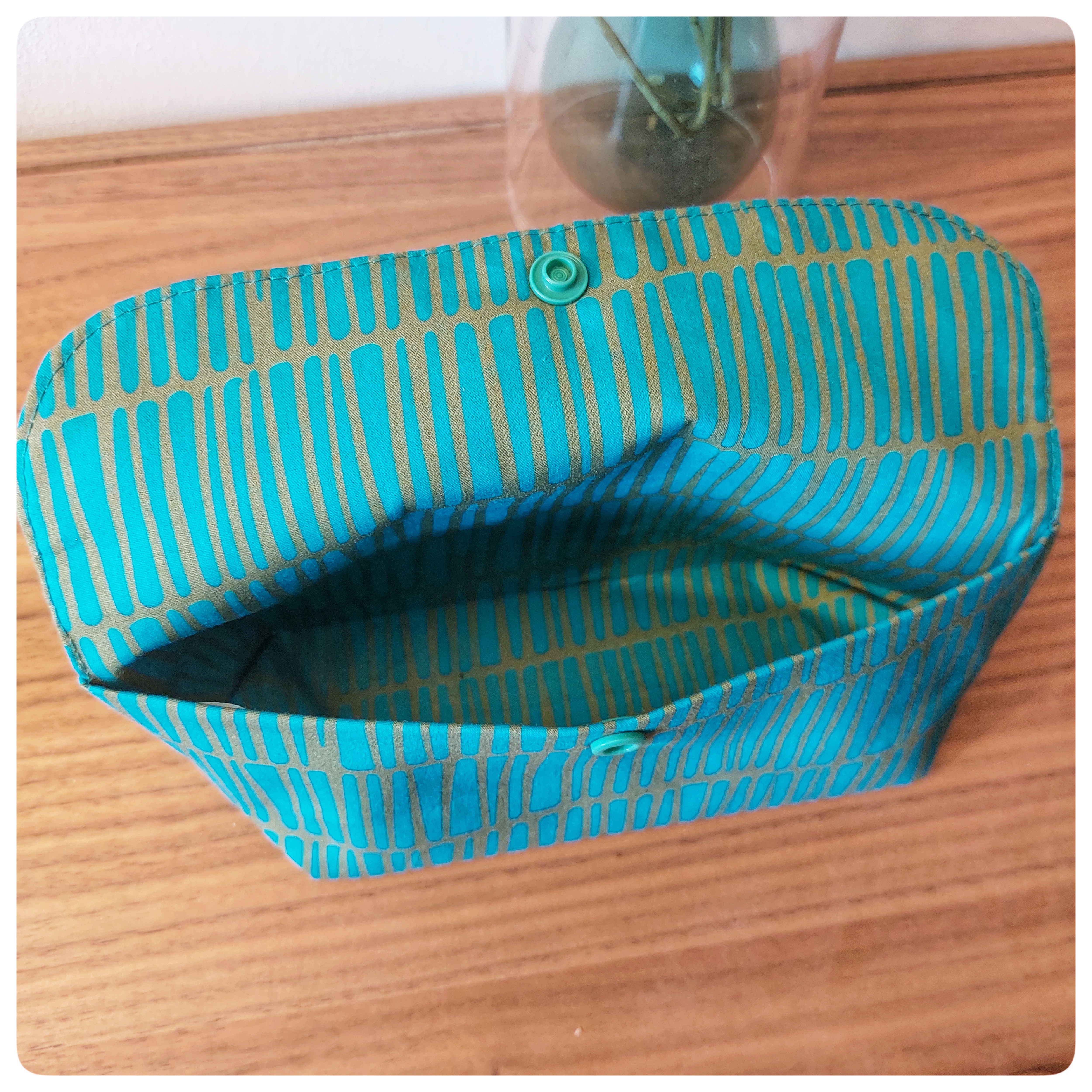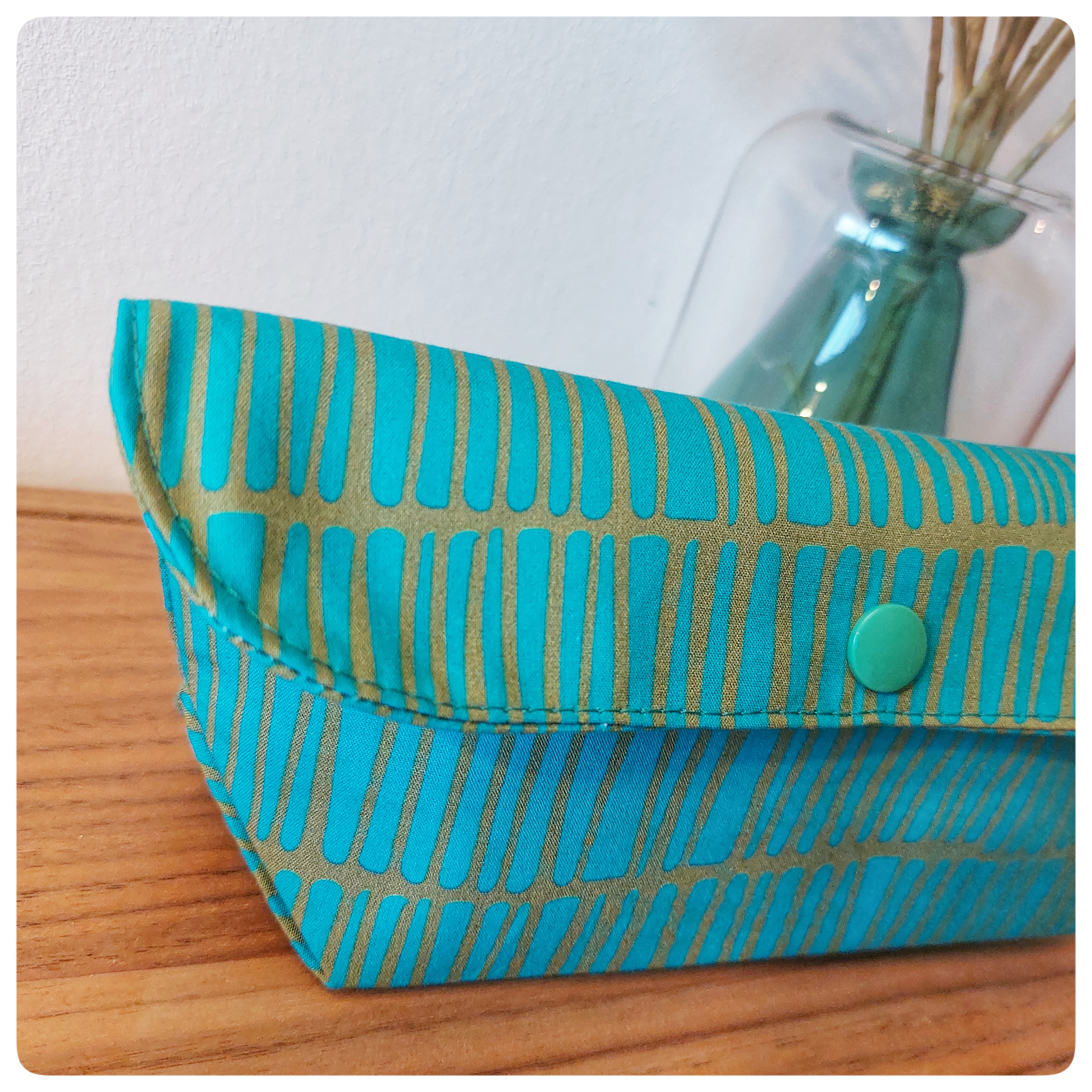 Pochette origami tissu coton vert d'eau rayure