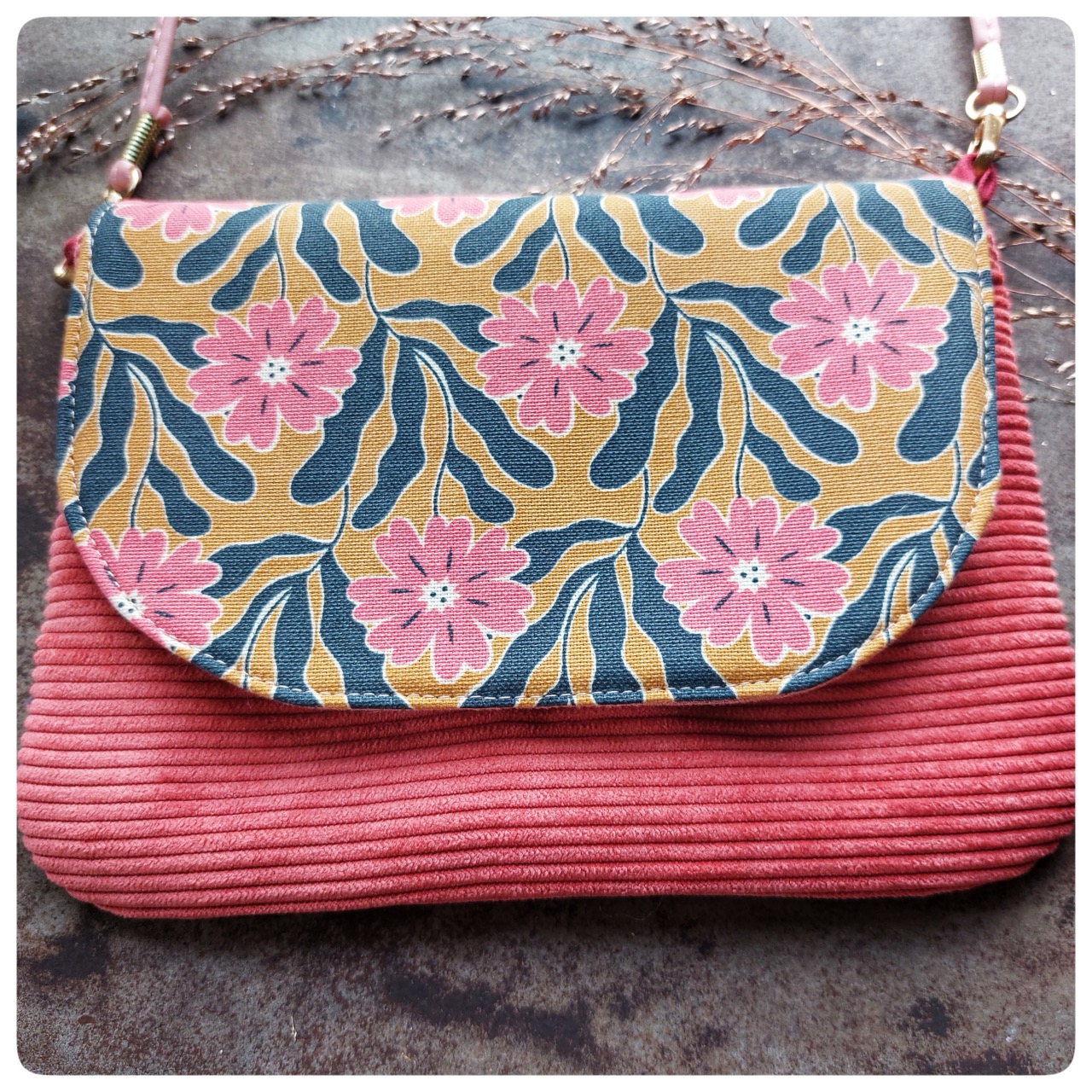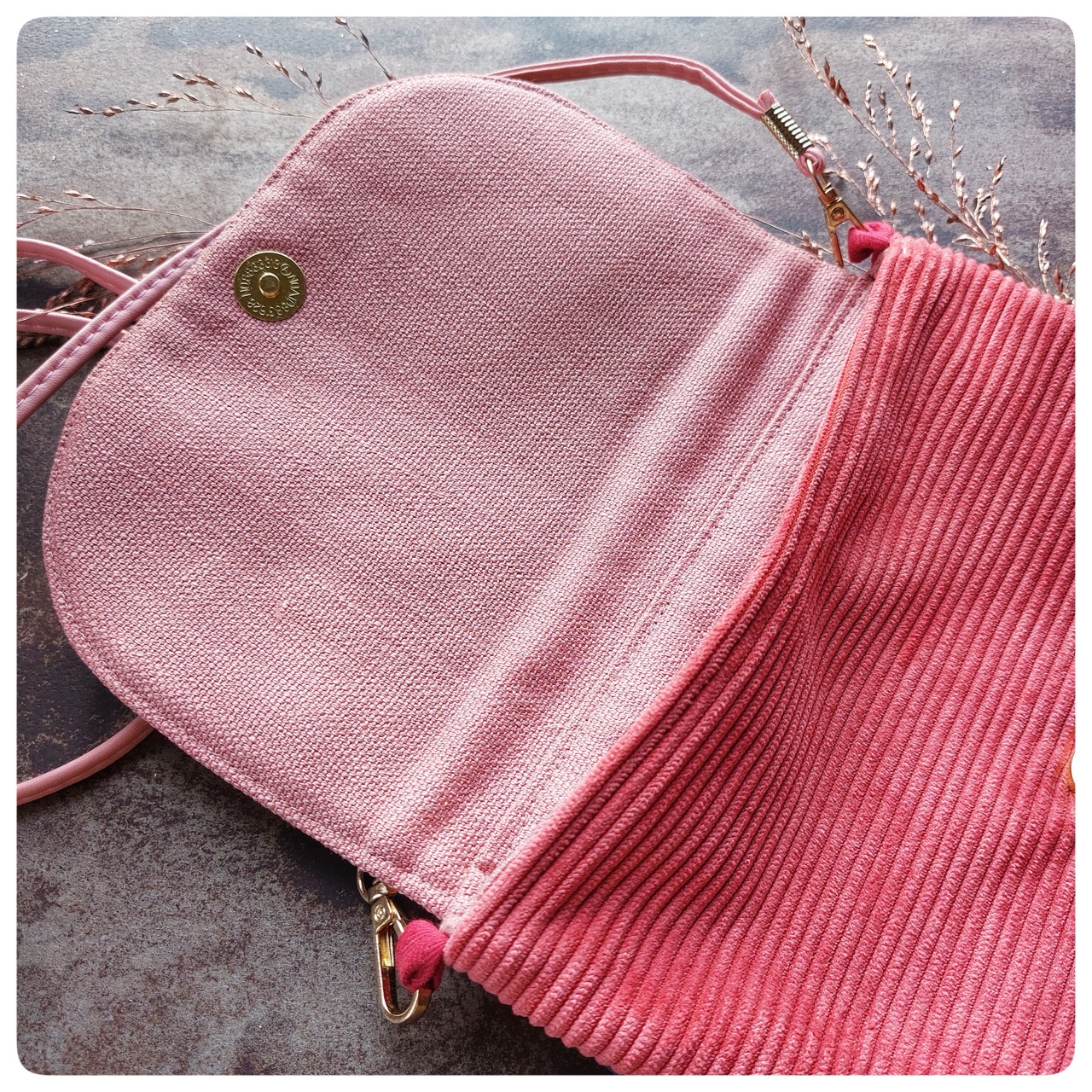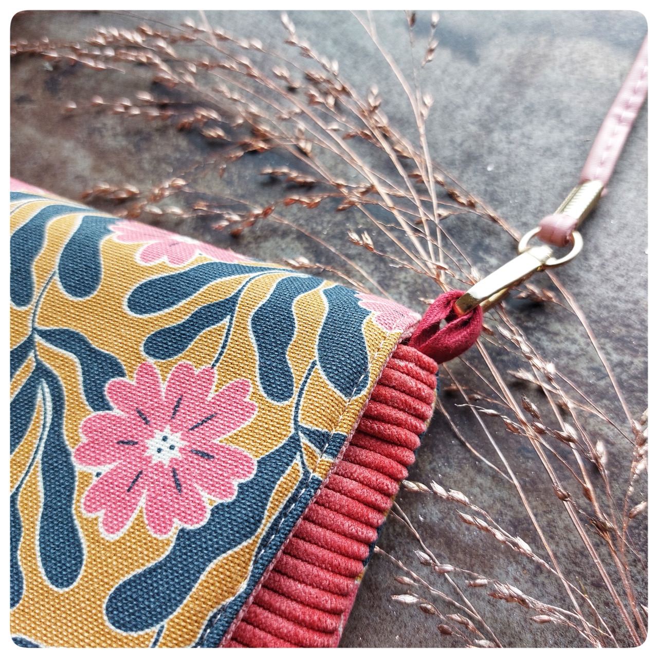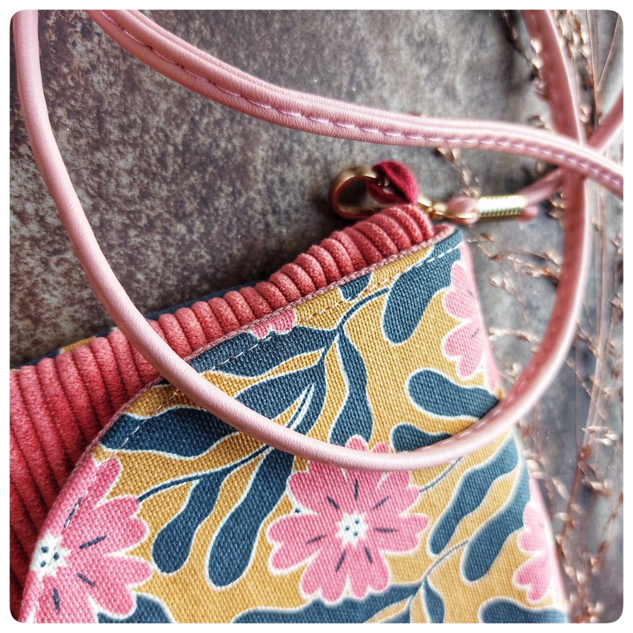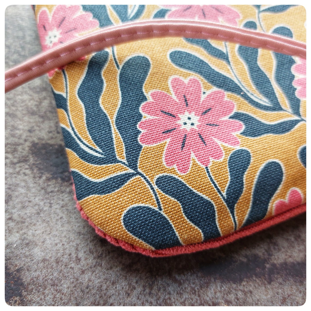 Sac Pochette velours rose imprime coton vintage