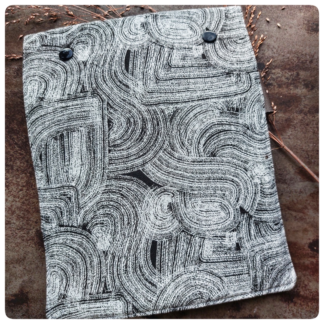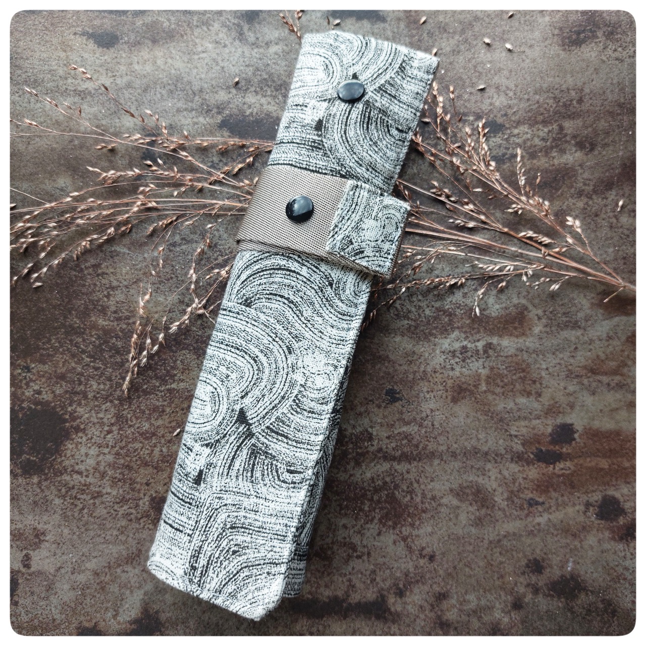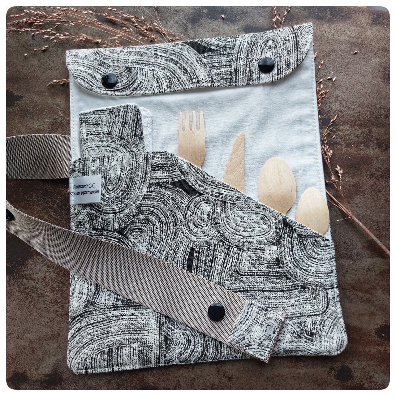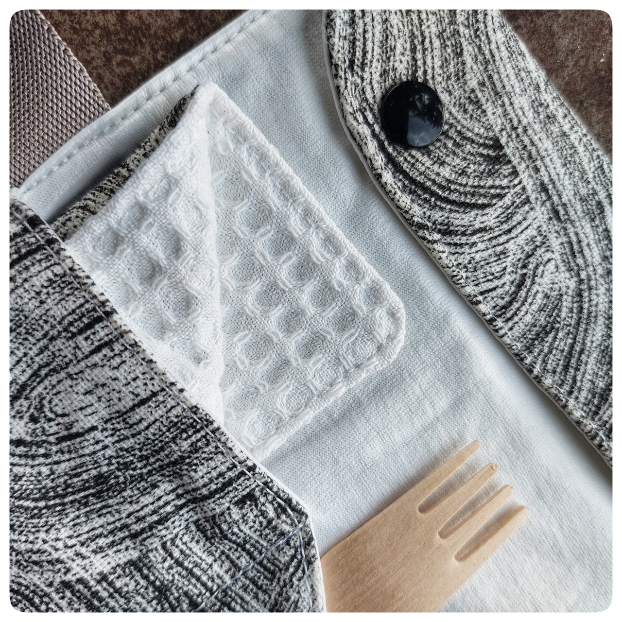 Pochette couvert pique-nique tissu coton blanc noir