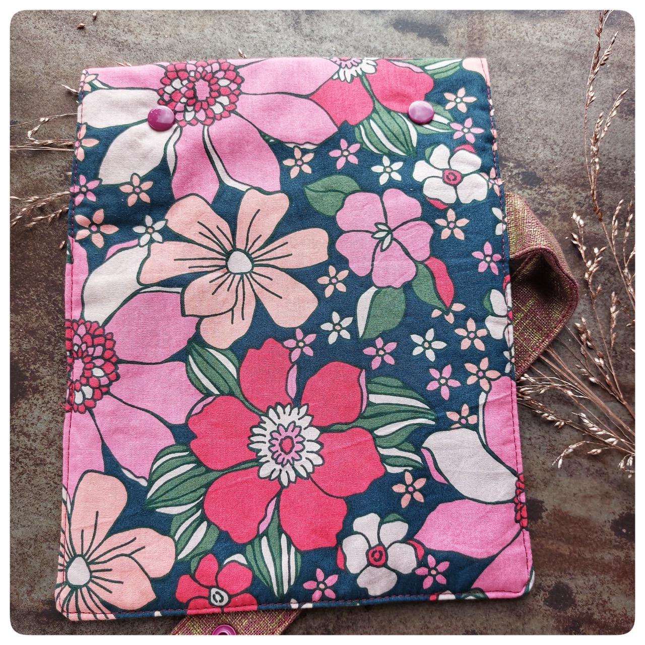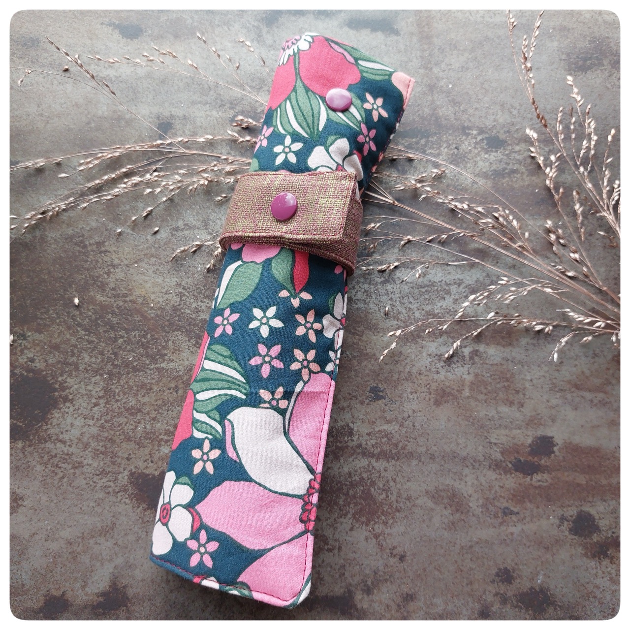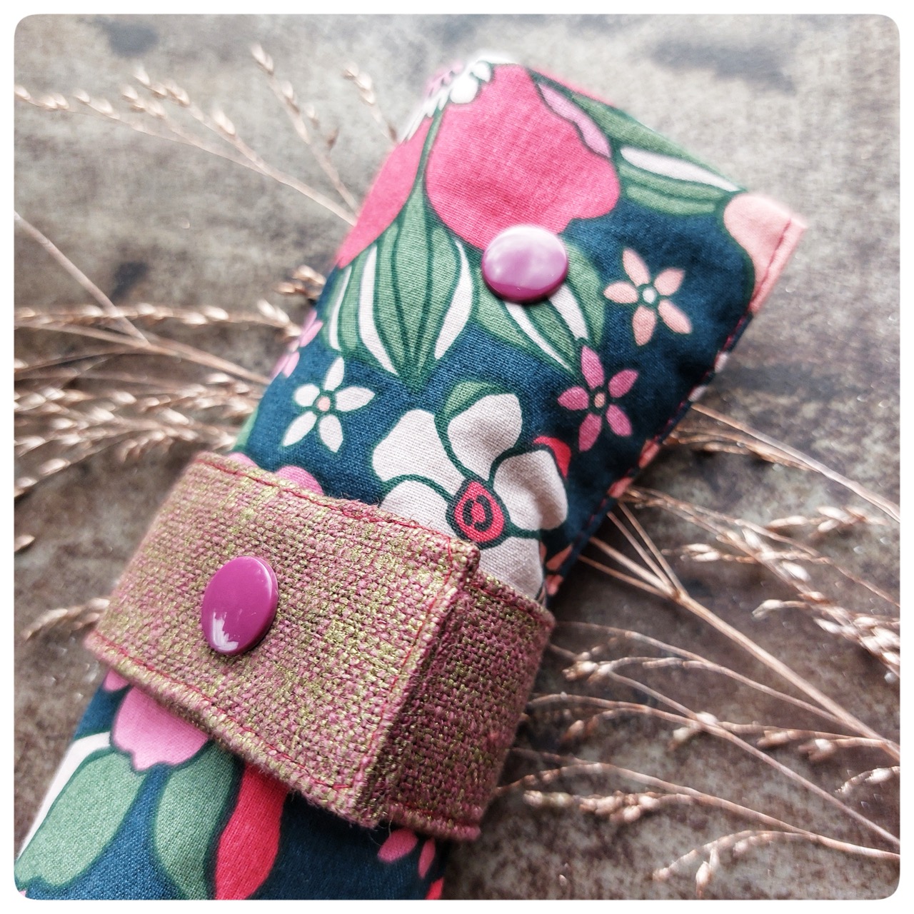 Pochette couvert pique-nique tissu coton fleuri rose