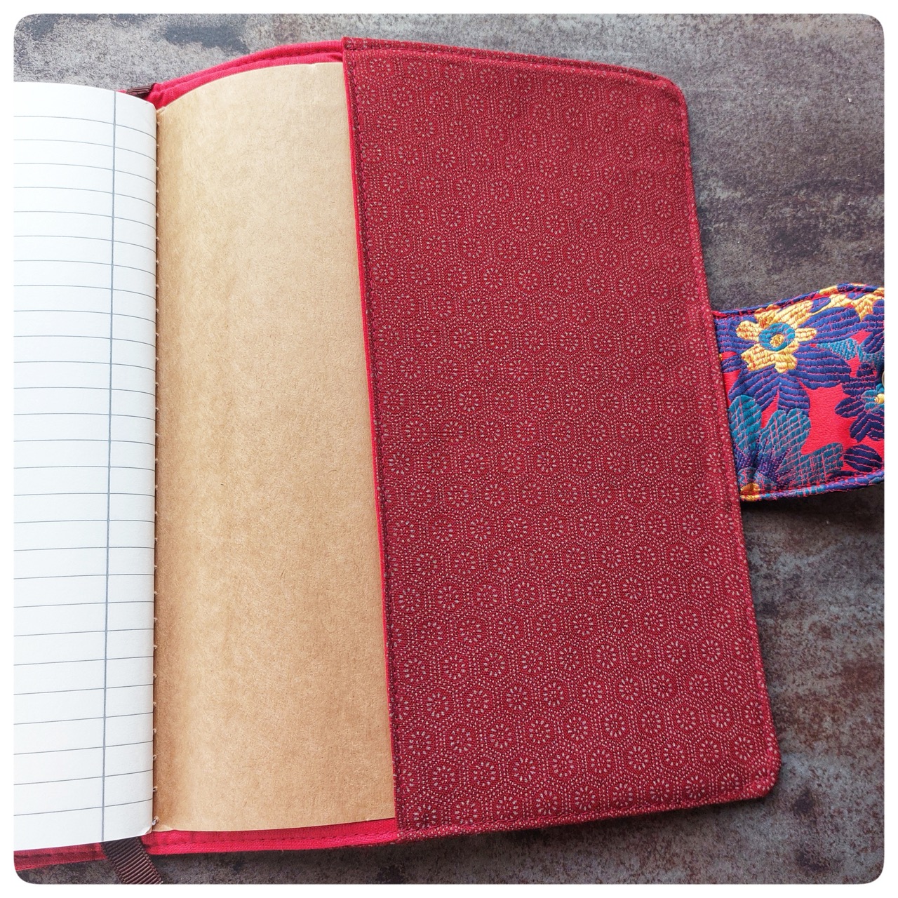 Pochette cahier d'écriture tissu japonais rouge
