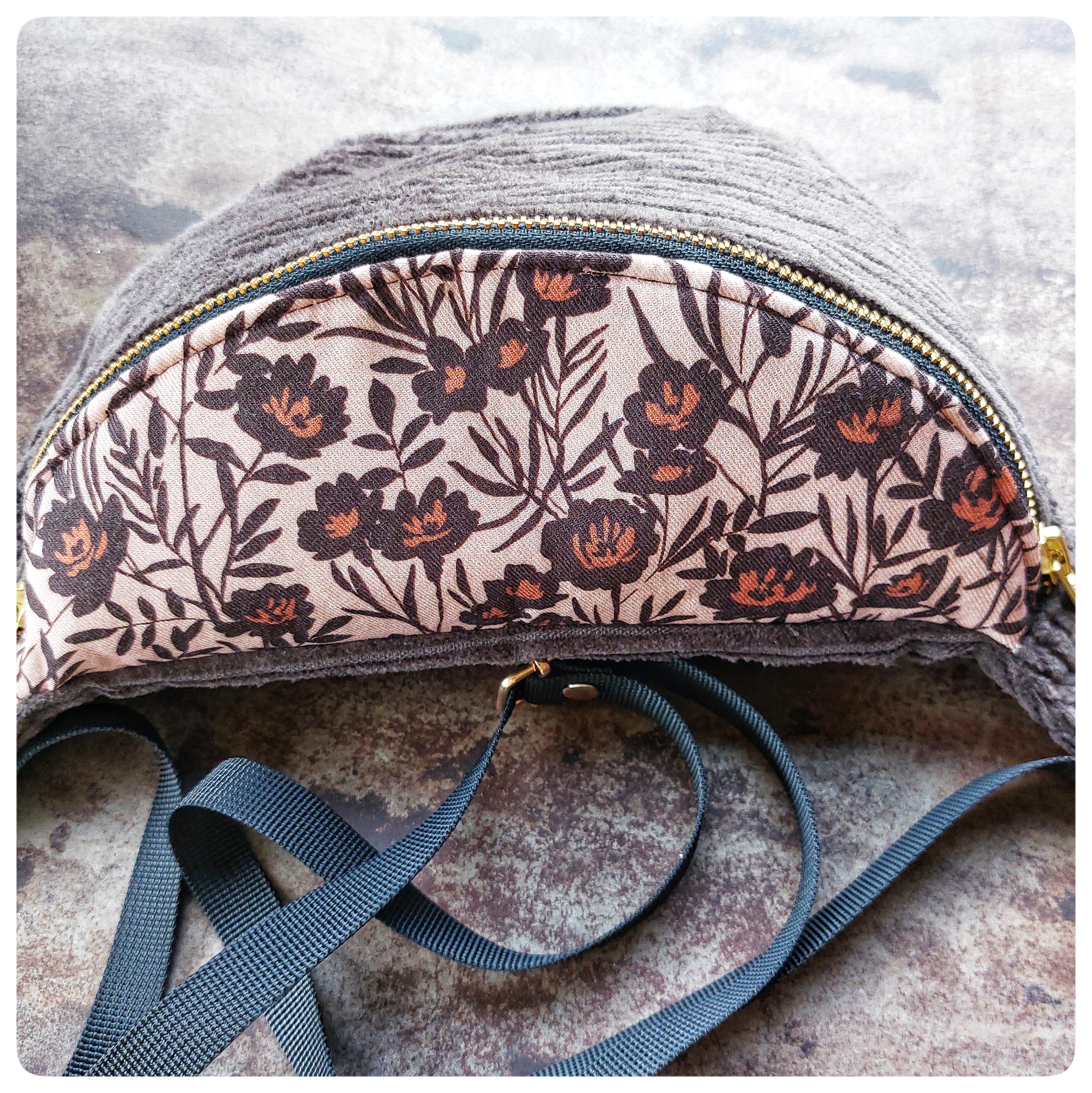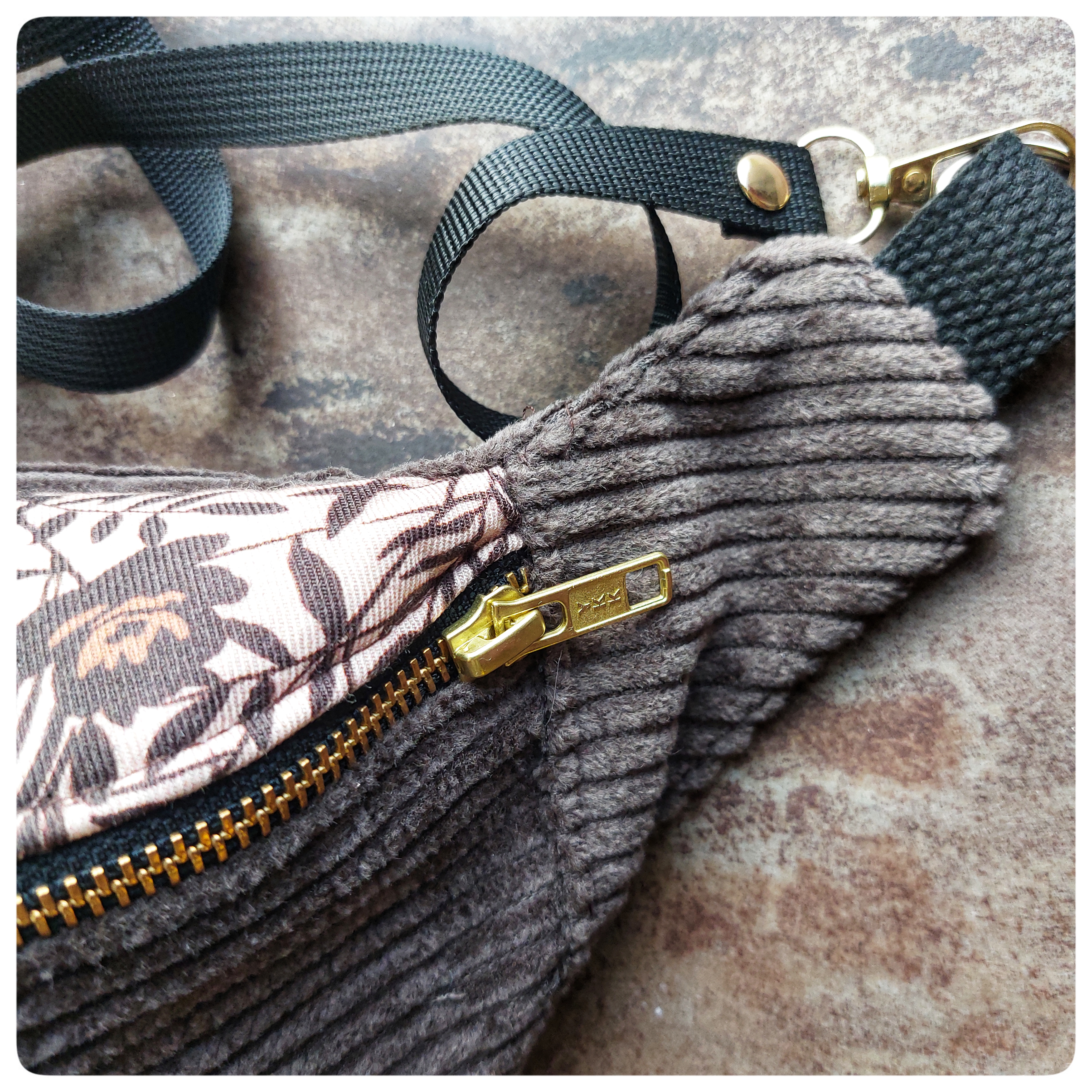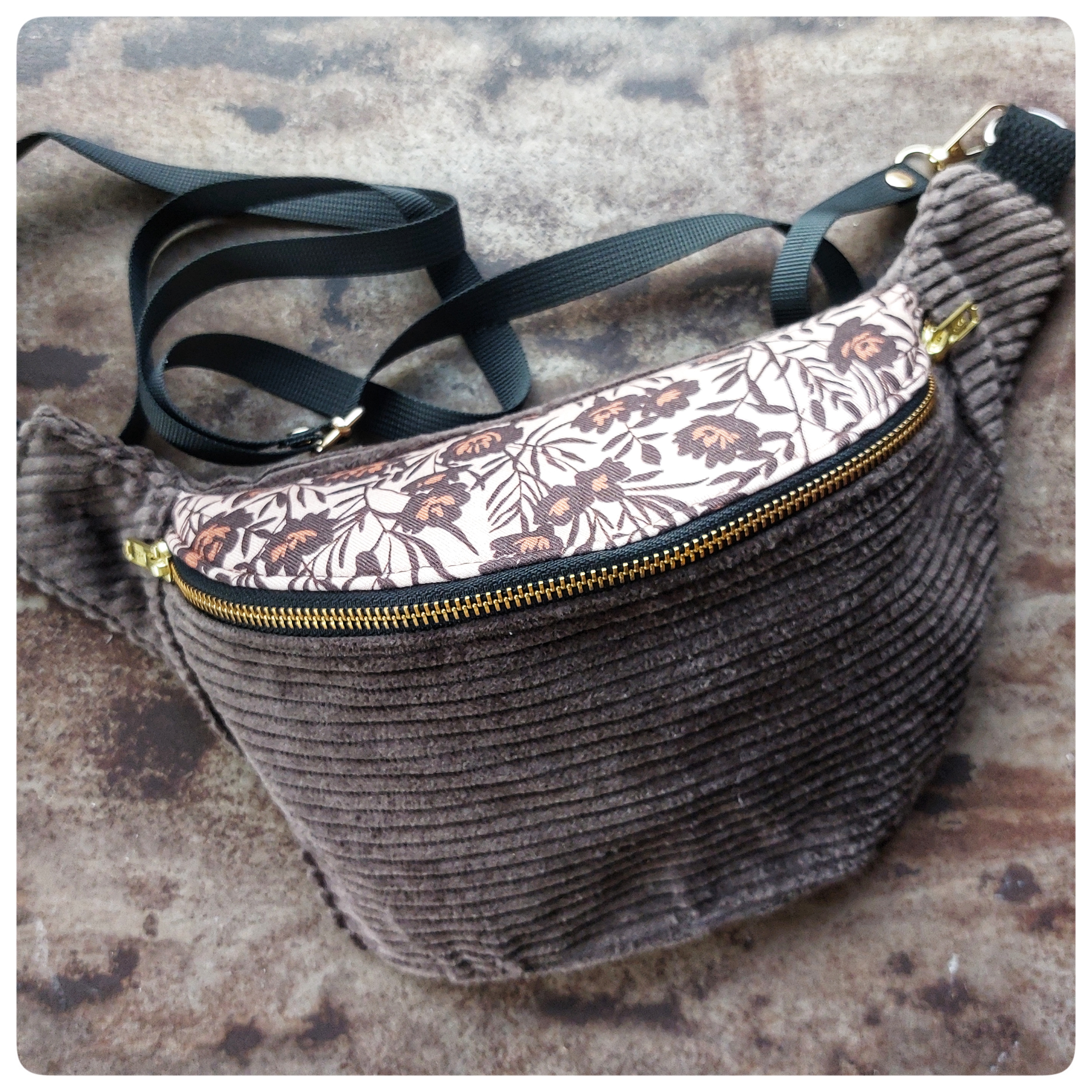 Sac banane Petit Format Velours marron et tissu fleuris