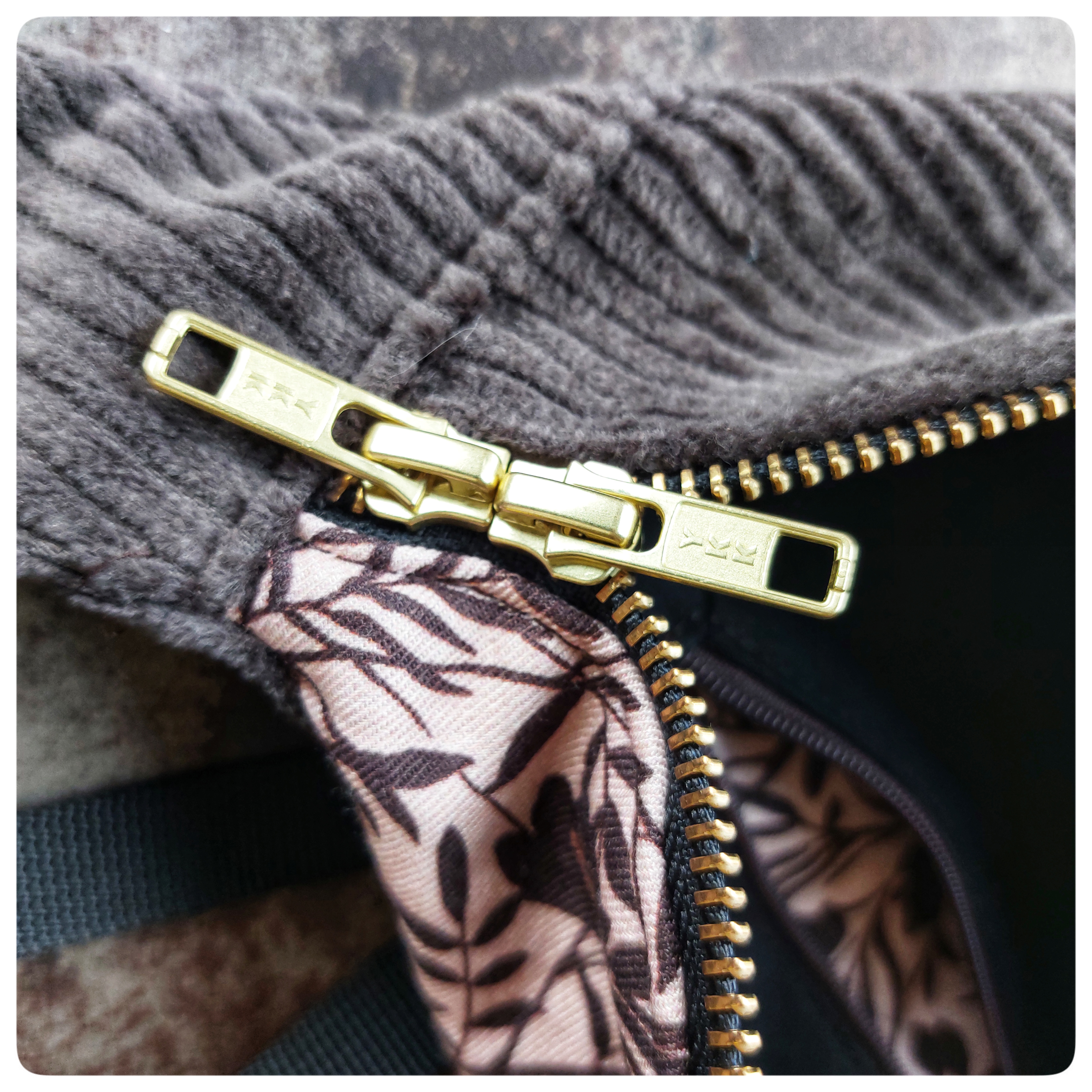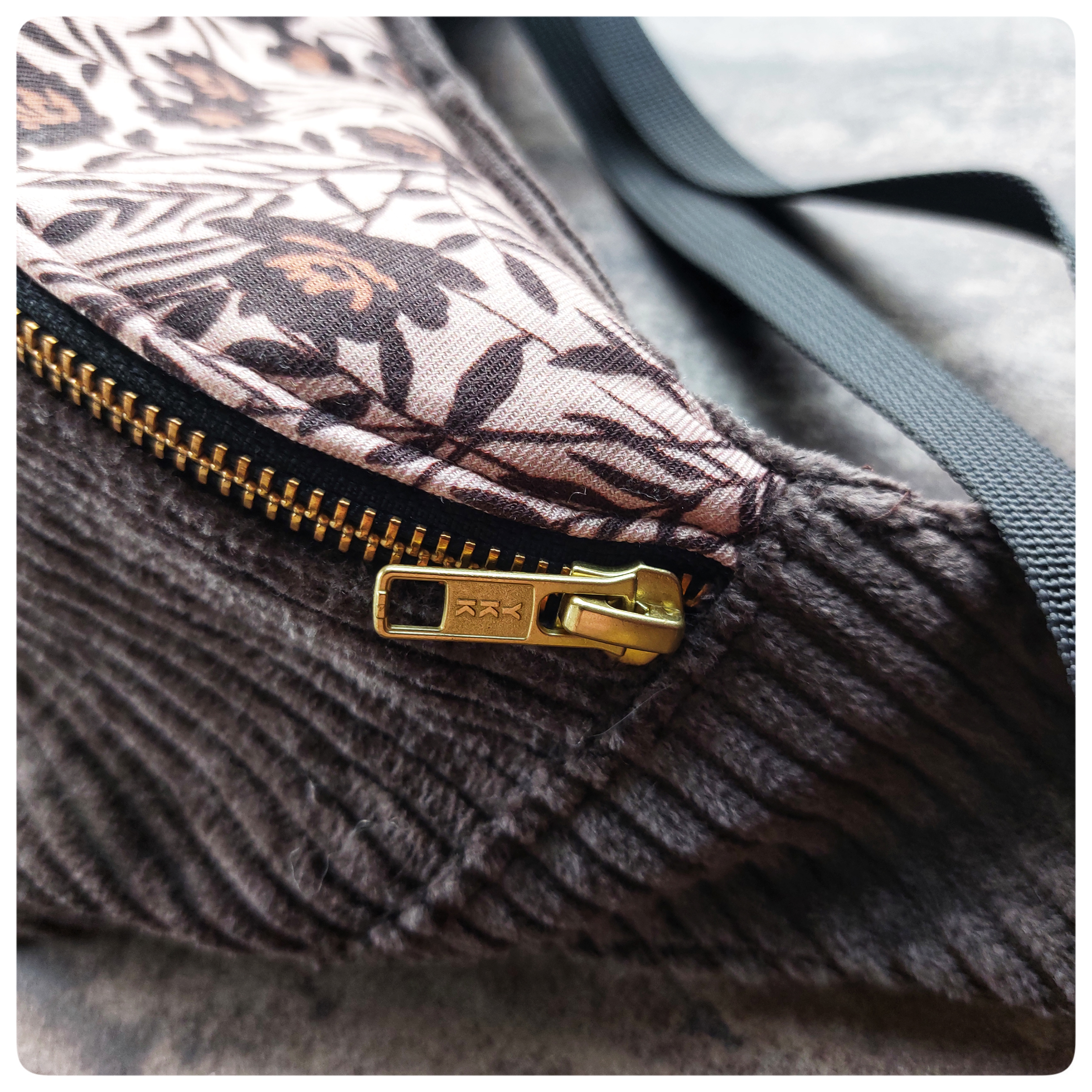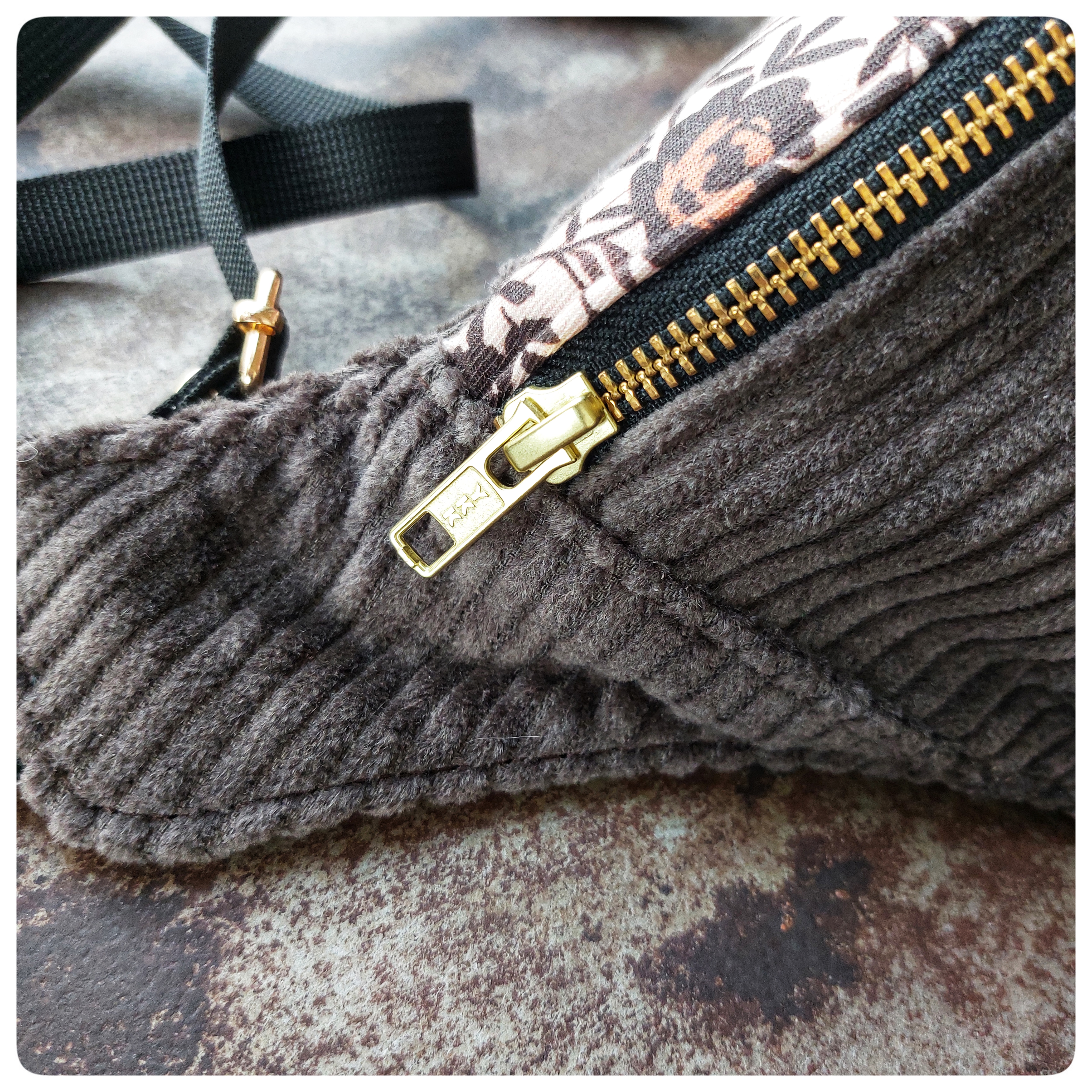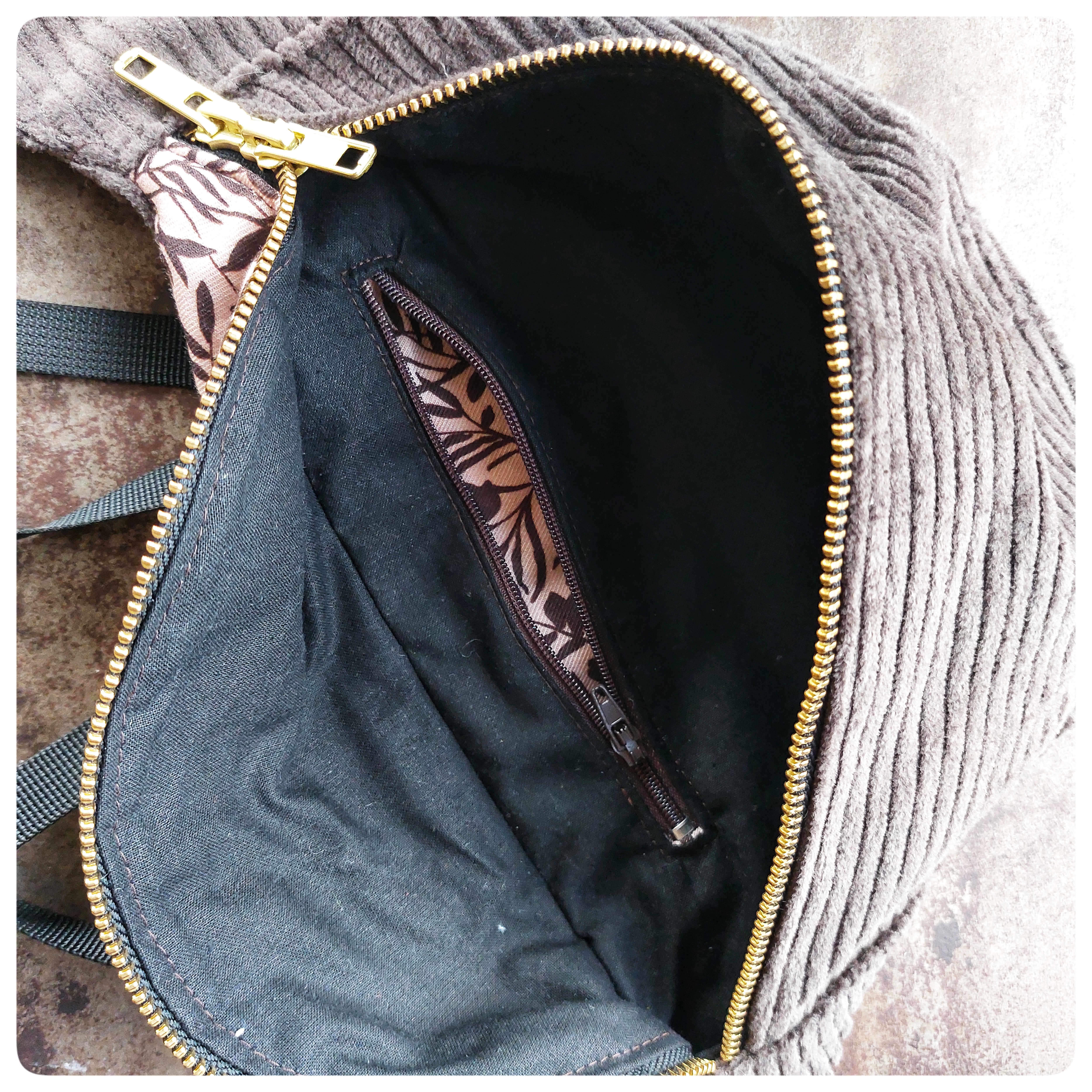 Sac banane Petit Format Velours marron et tissu fleuris