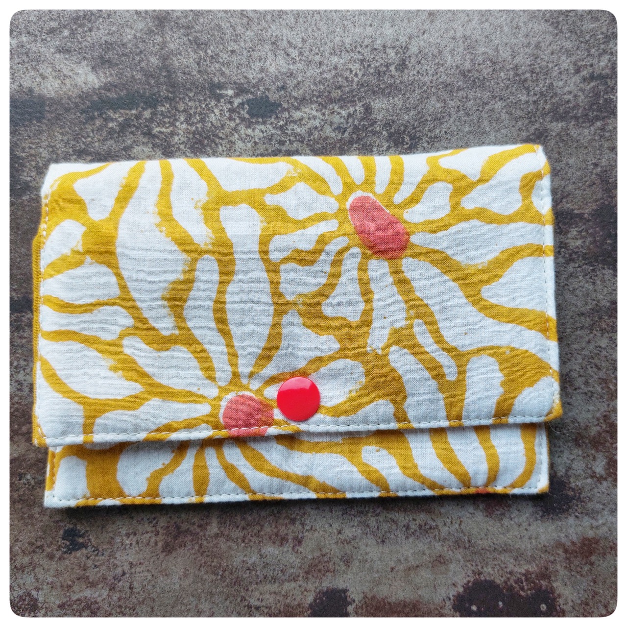 Pochette blague à tabac tissu indien jaune et blanc