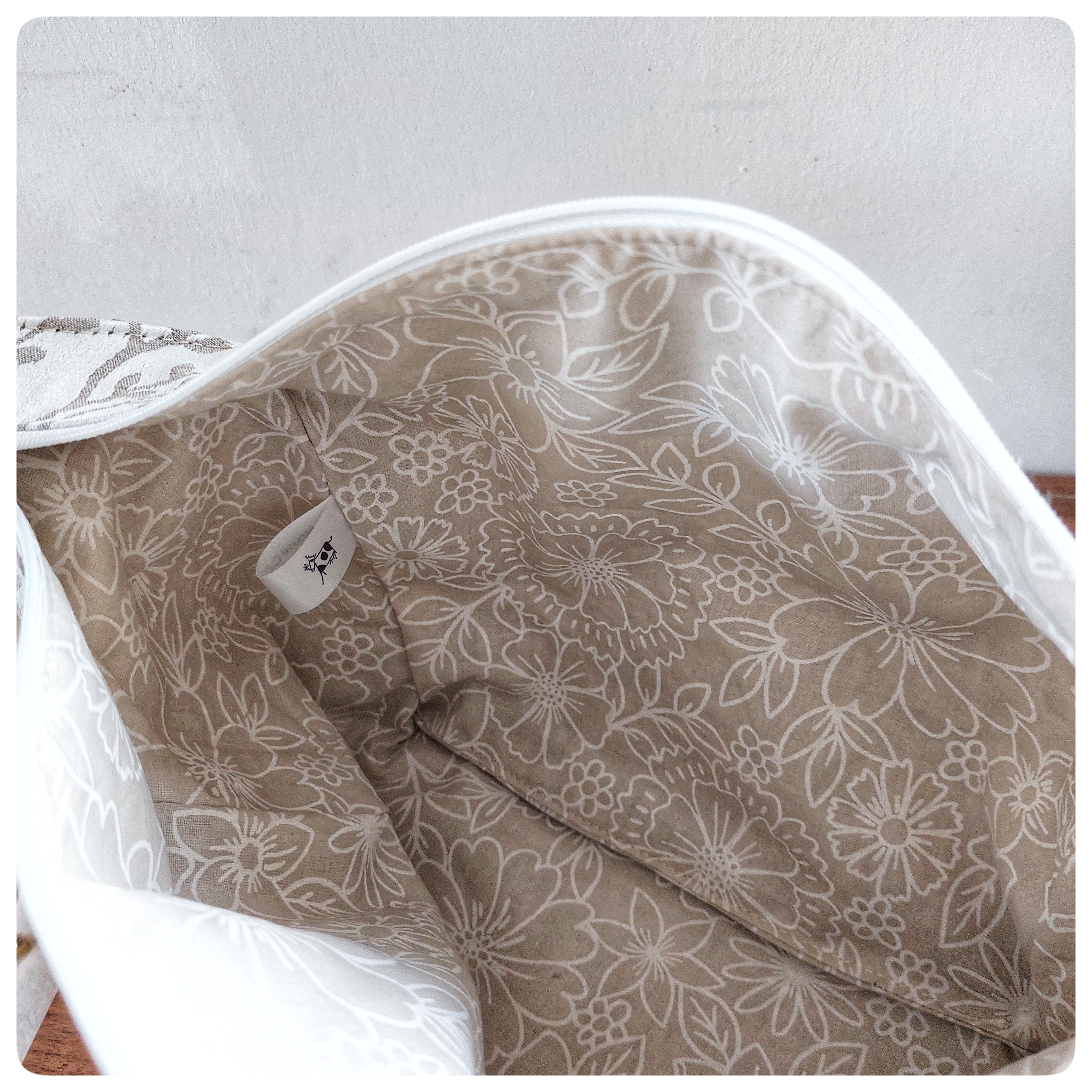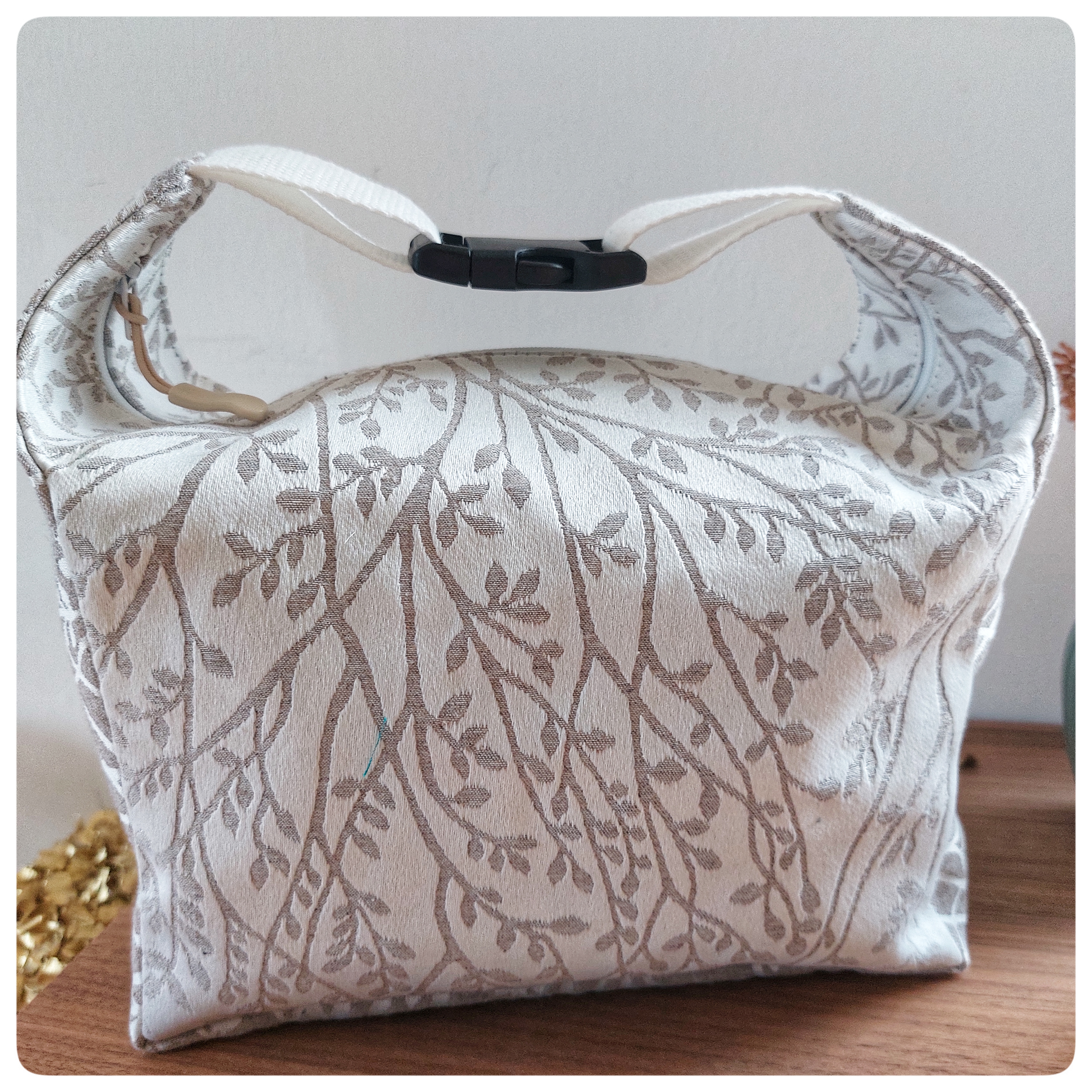 Sac Bento / Trousse de toilette tissu en coton crème blanc fleurs brodées