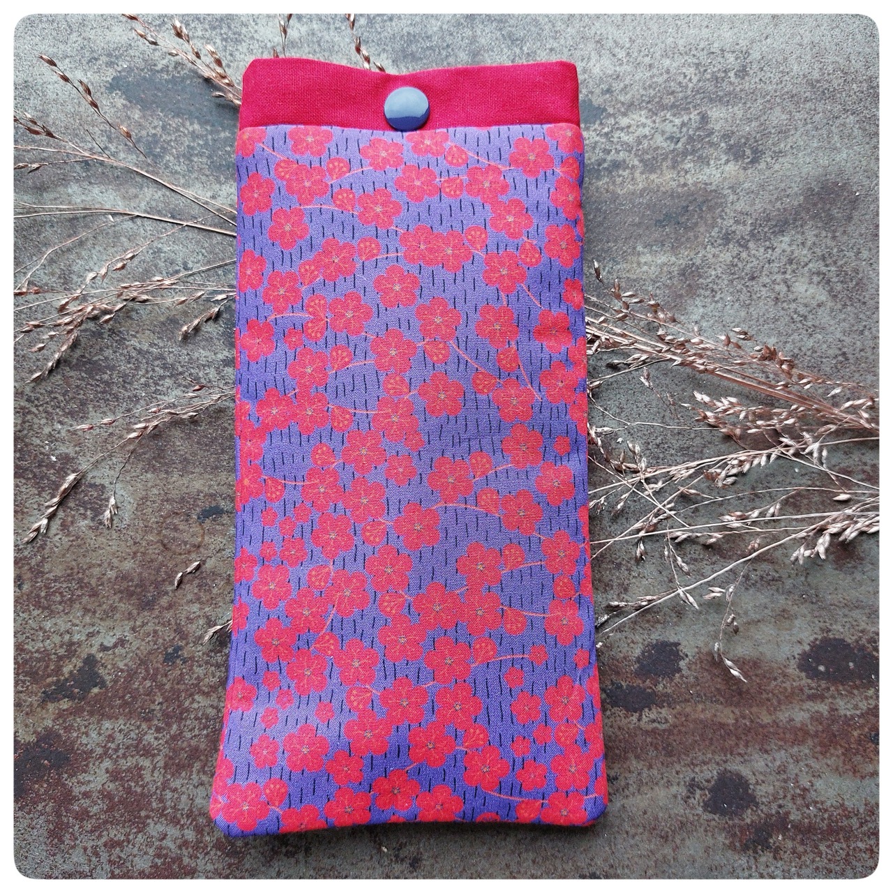Pochette à lunette tissu japonais mauve et rouge