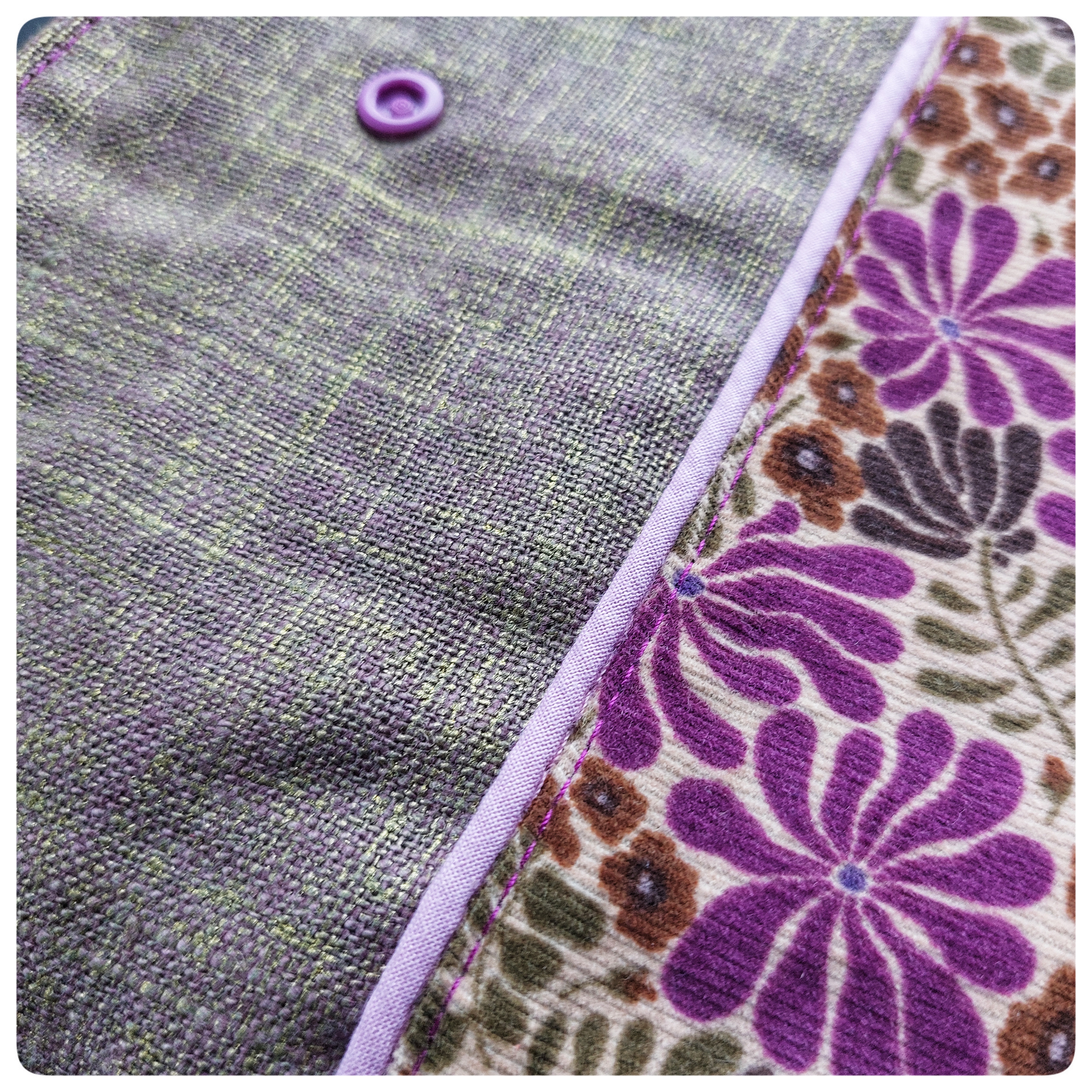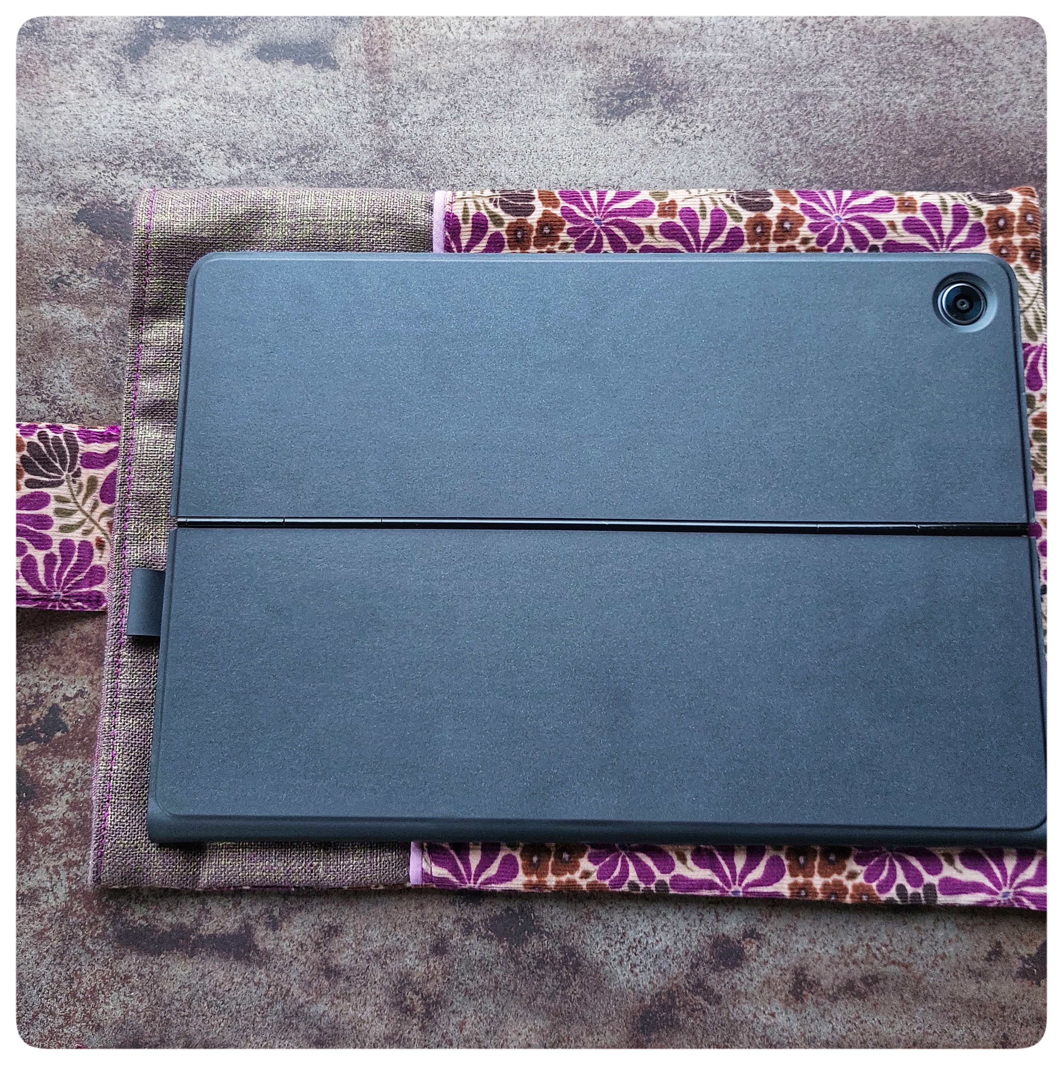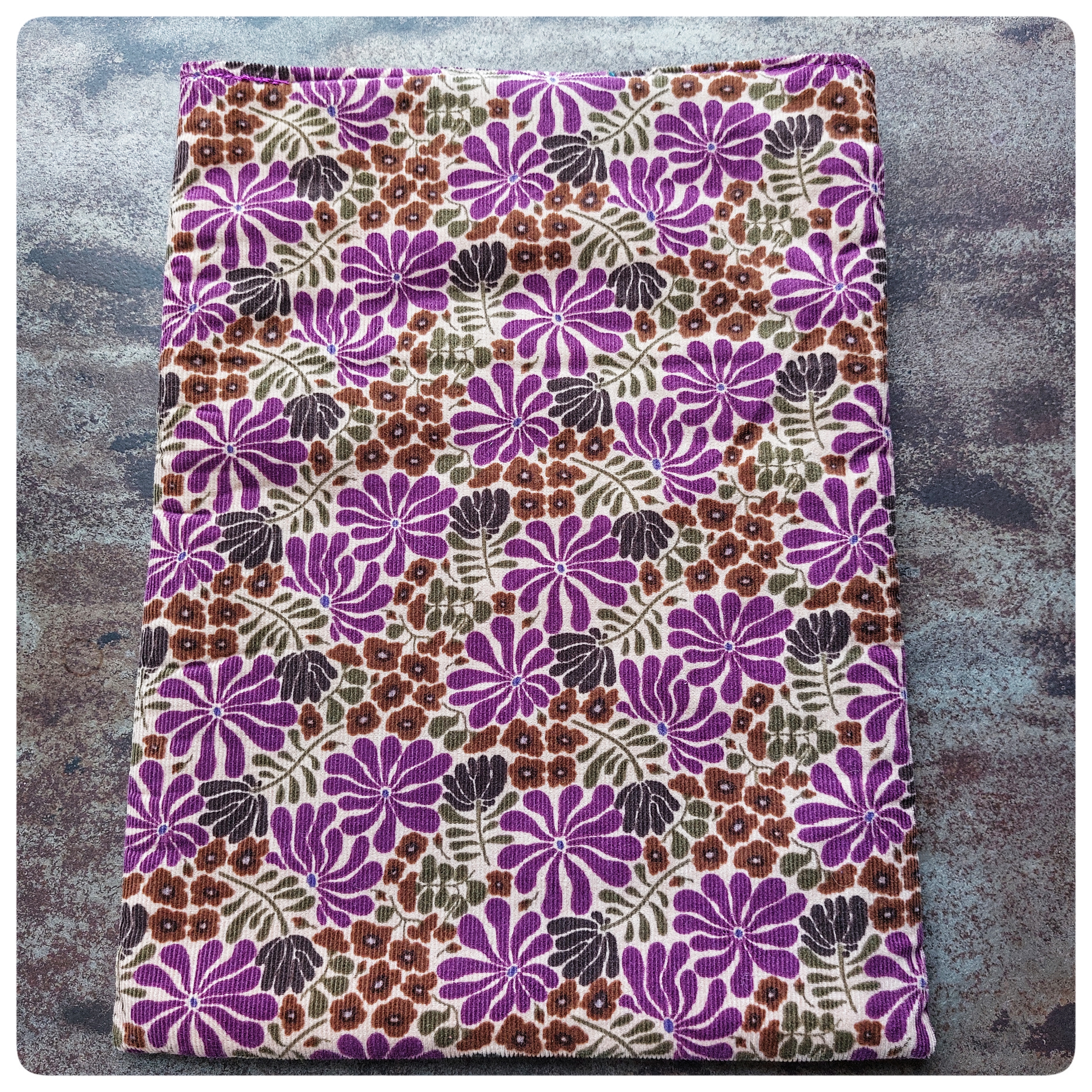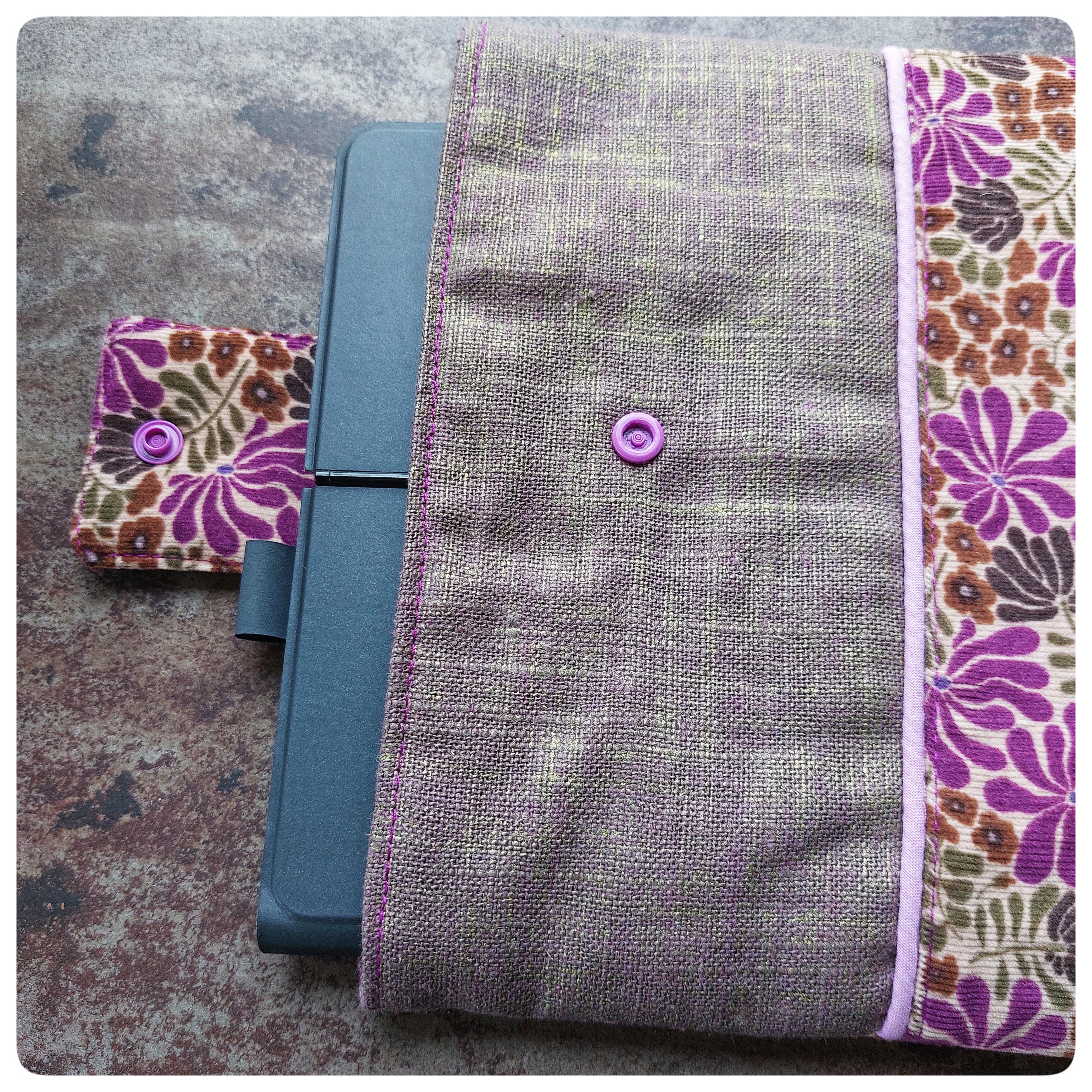 Pochette tablette/ordinateur en tissu velours milleraies mauve fleurs