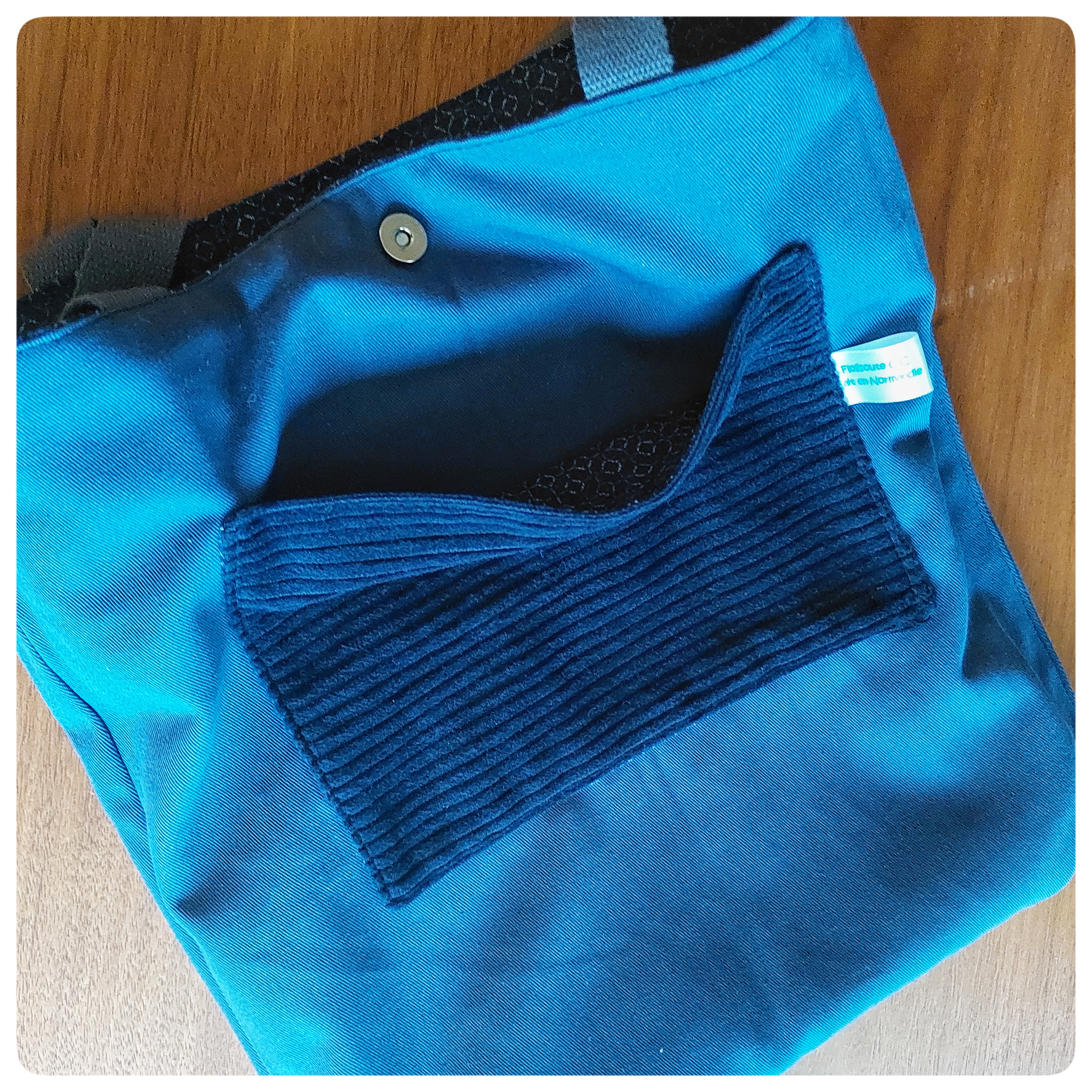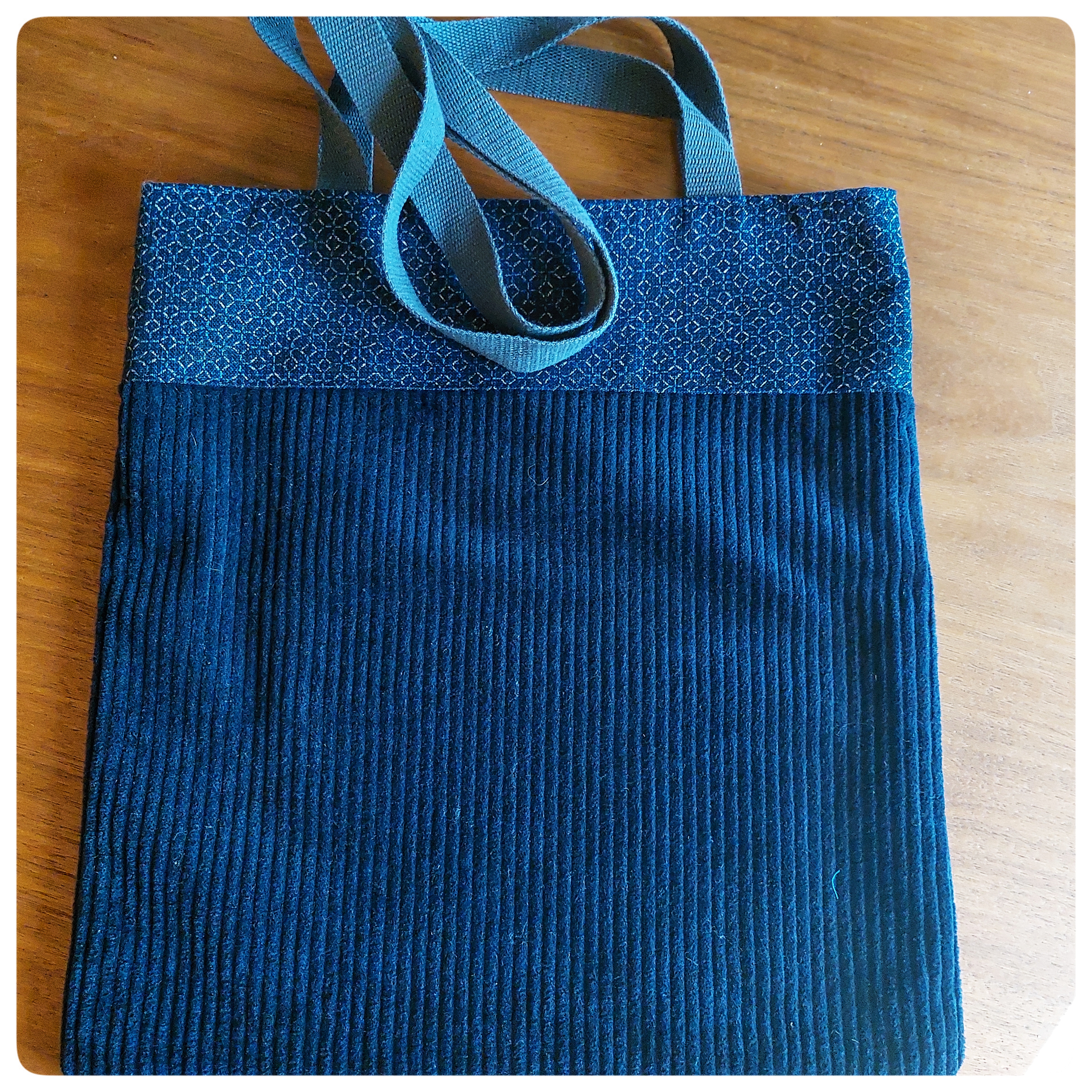 Sac tote bag en velours bleu marine et tissu japonais