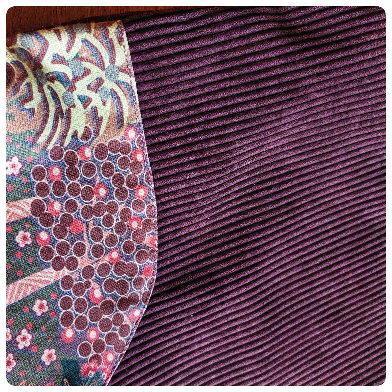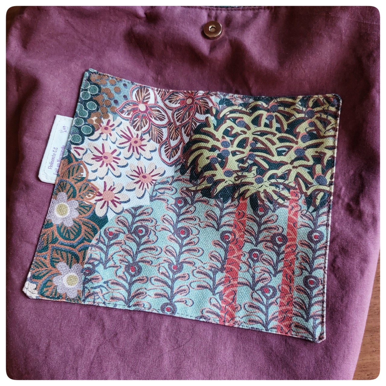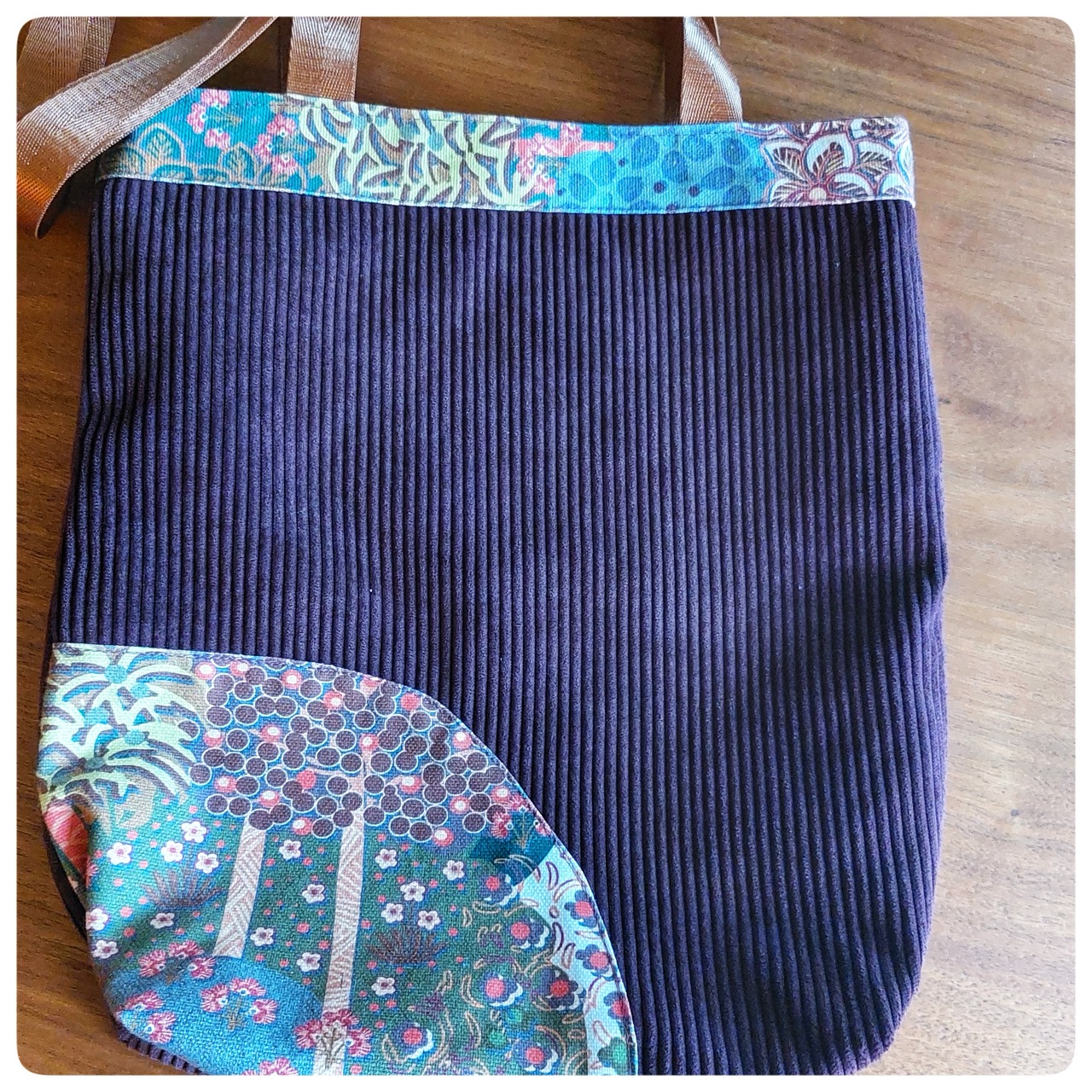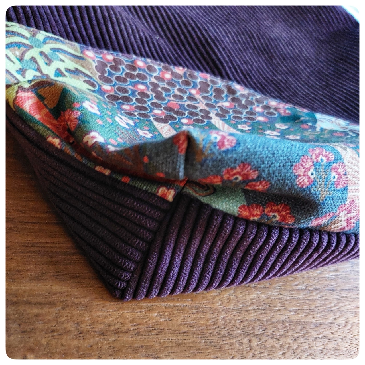 Sac tote bag en velours mauve et tissu japonais fleuries