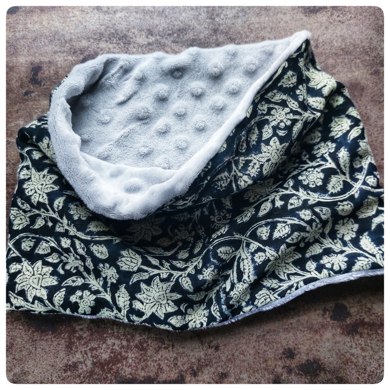 Snood pour enfant en tissu indien marine et minky
