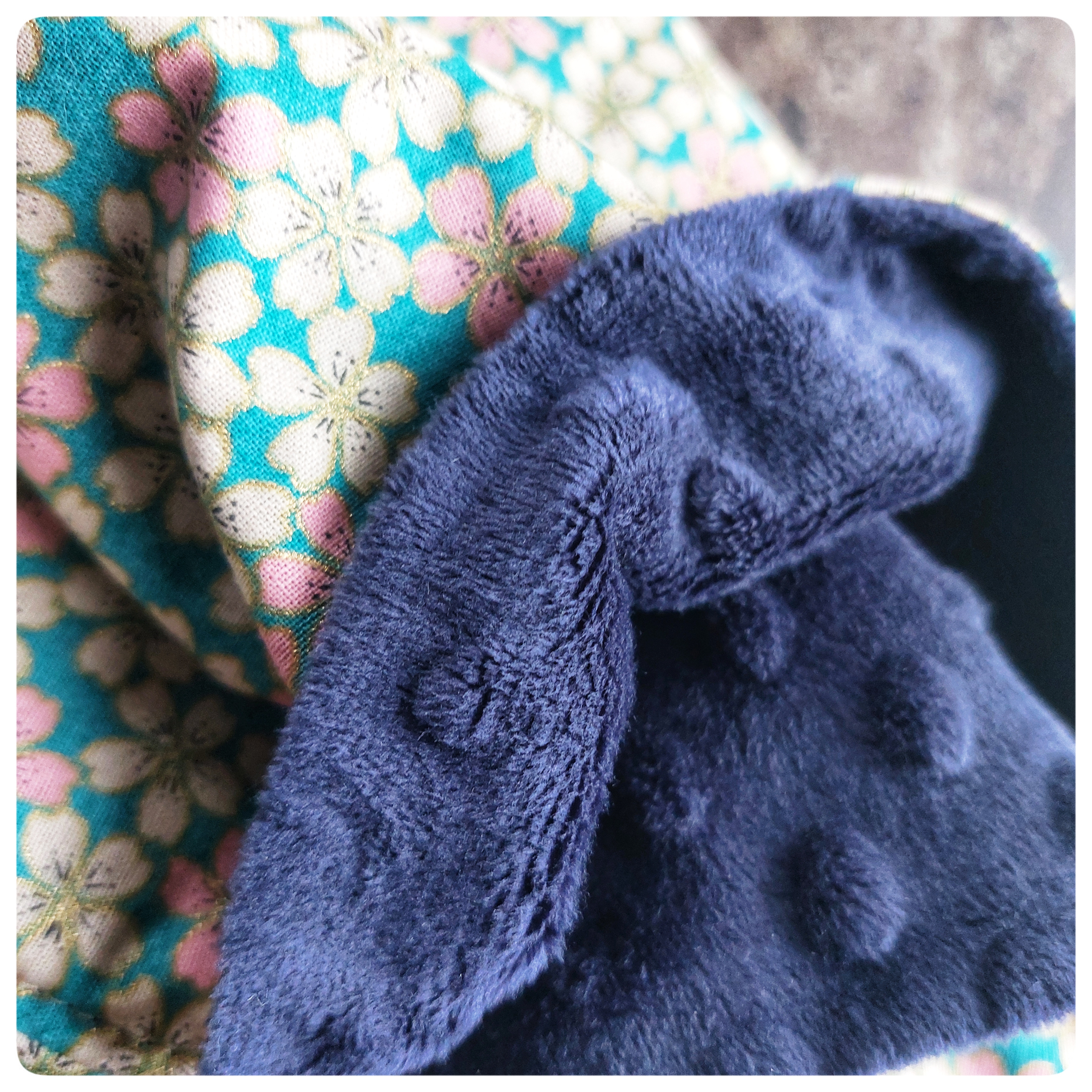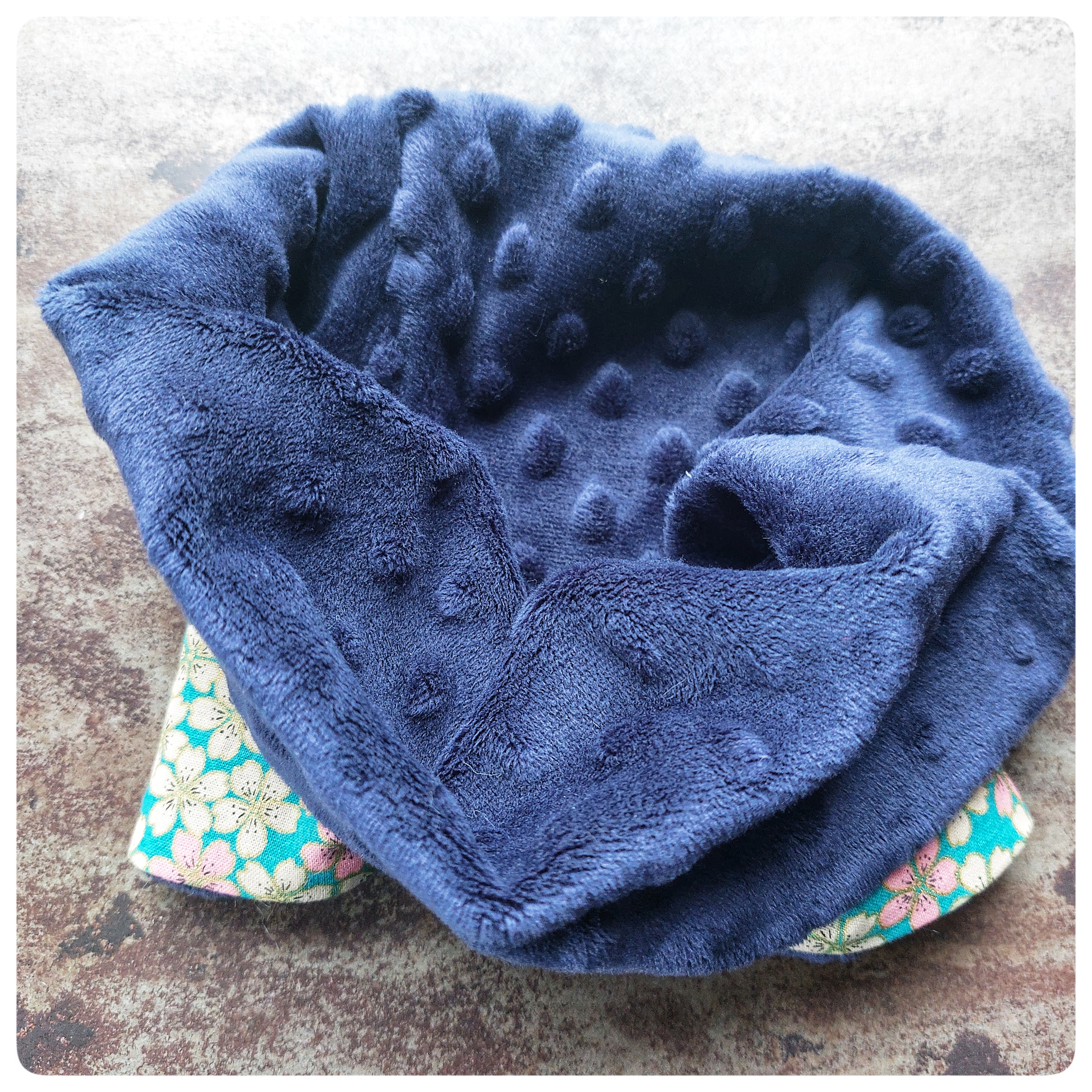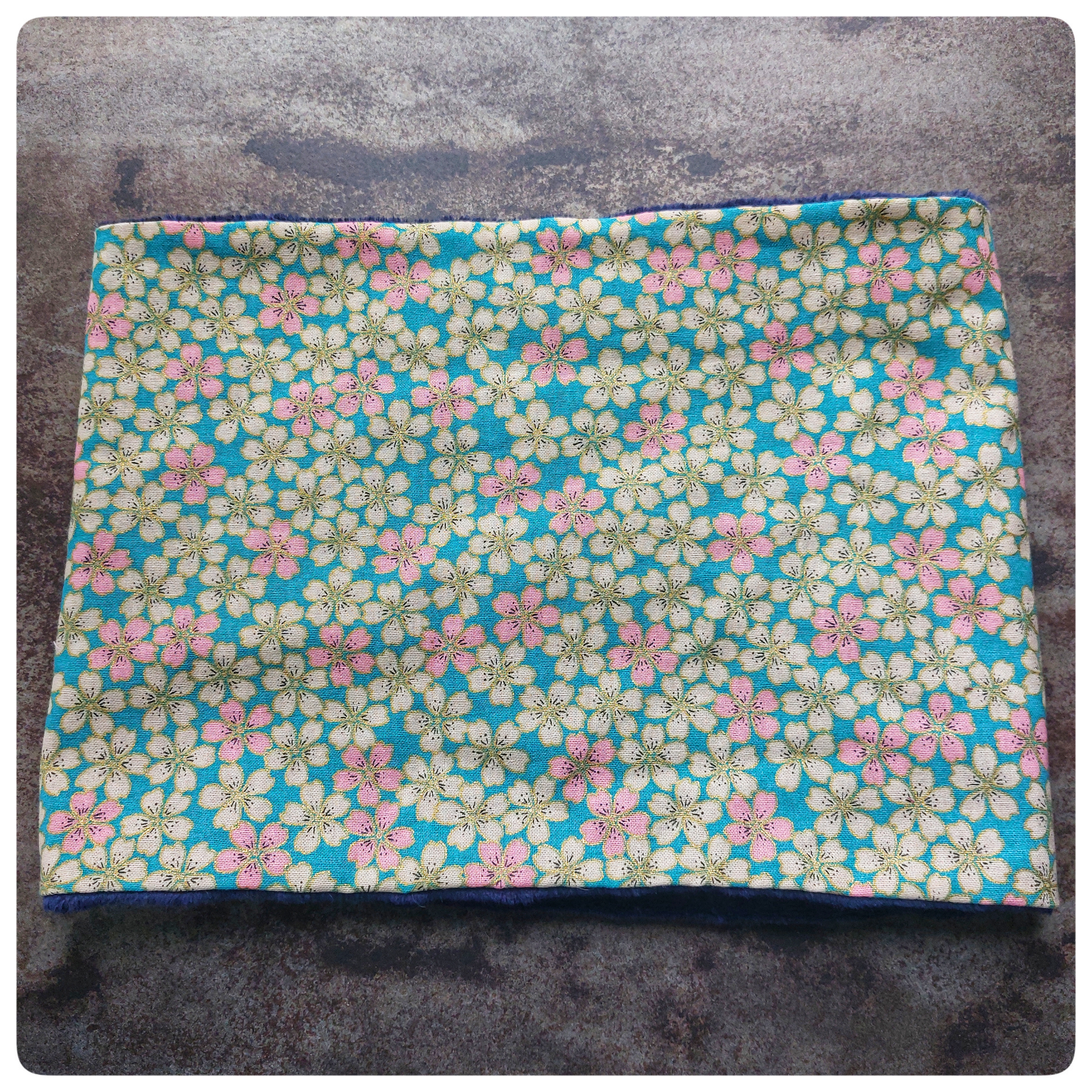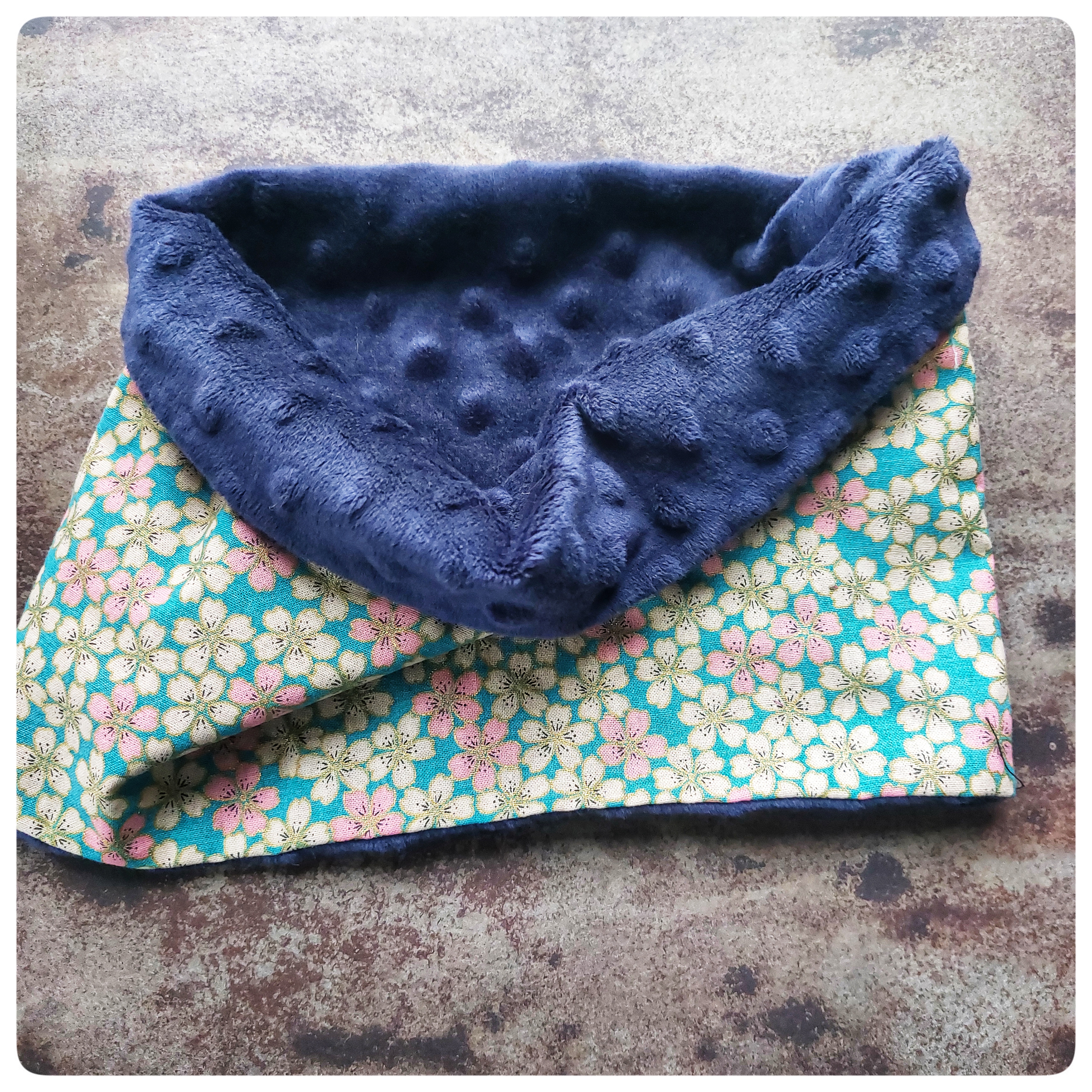 Snood pour enfant tissu japonais bleu et rose tissu minky bleu marine