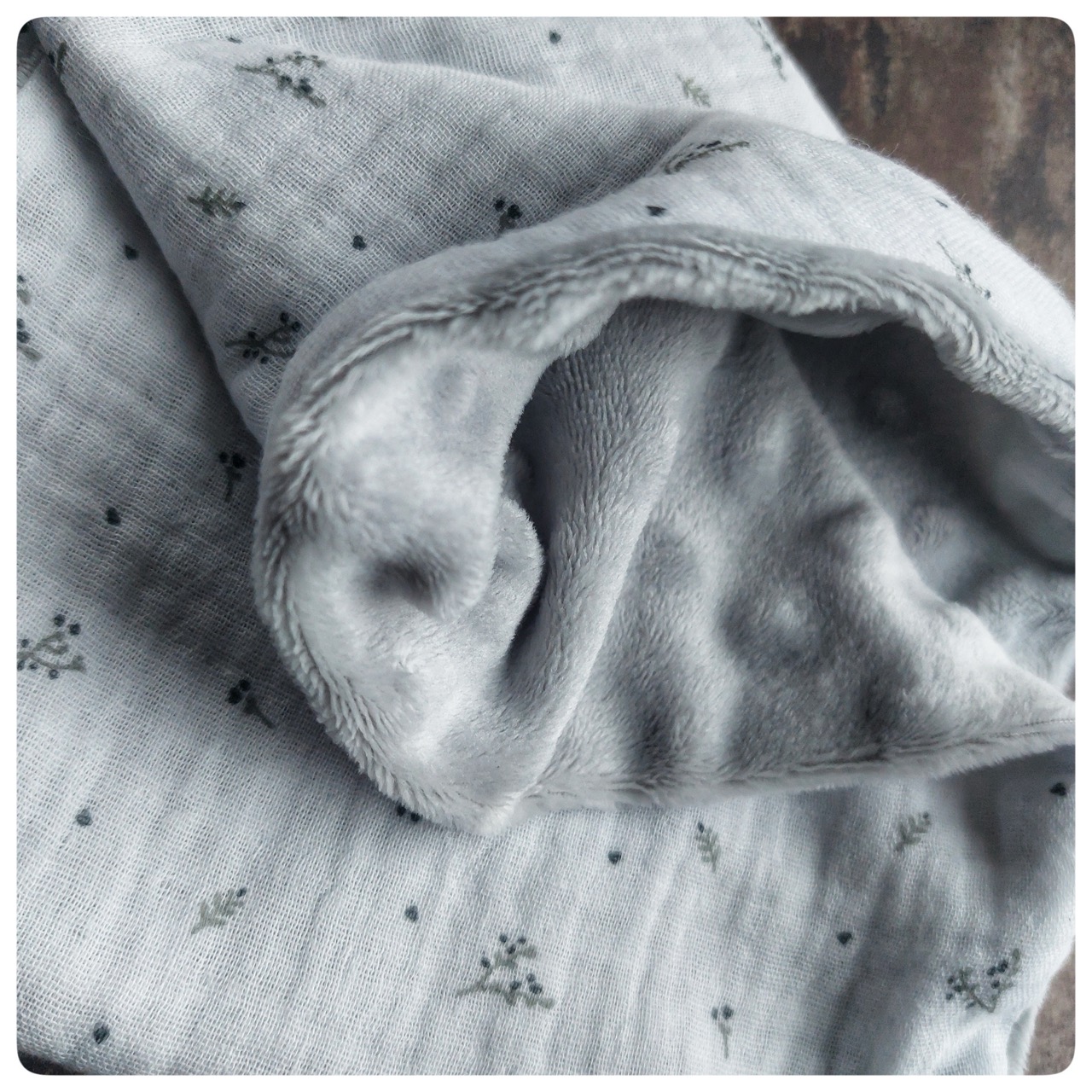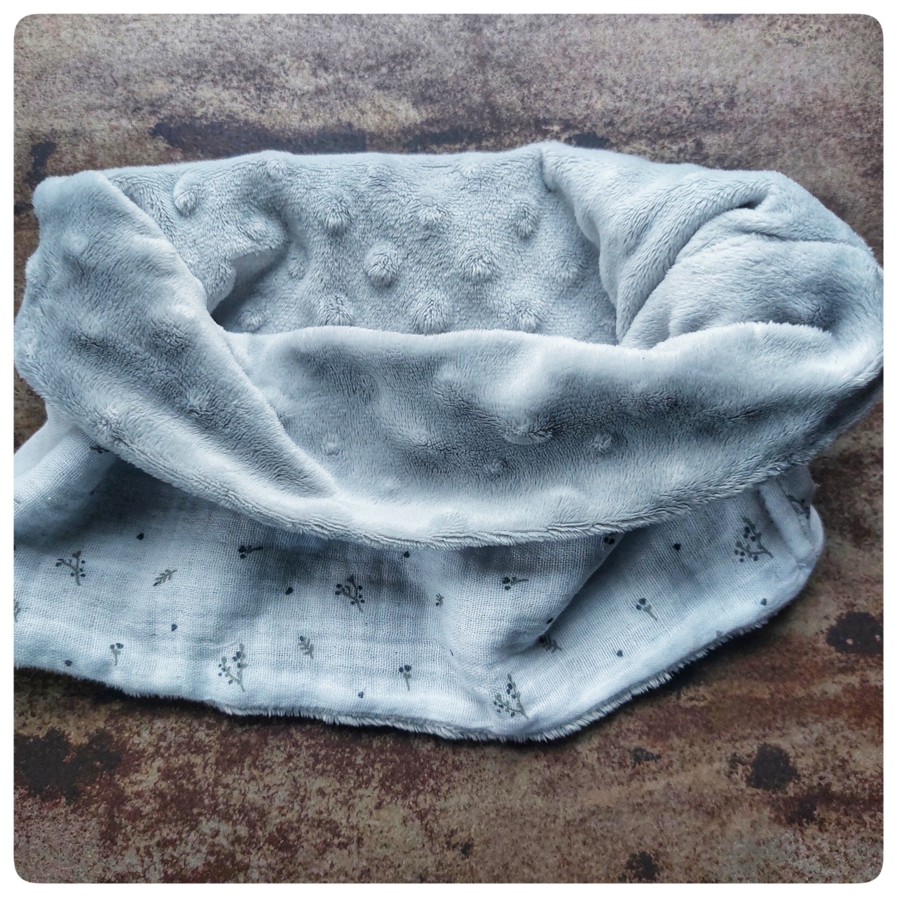 Snood pour enfant tissu gaz de coton gris clair et minky gris