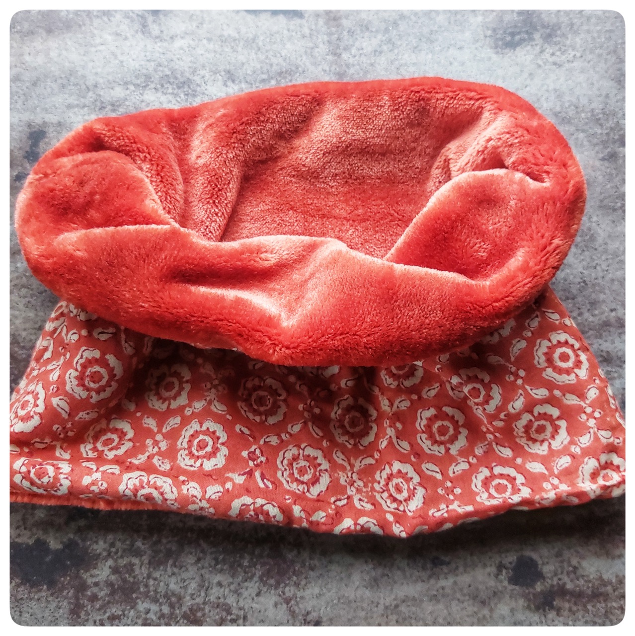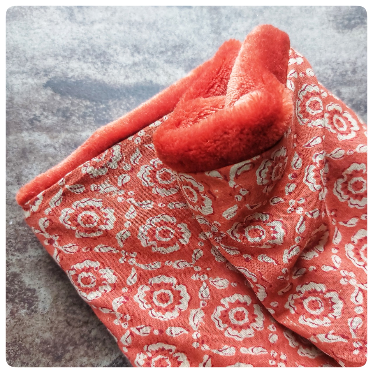Snood pour enfant en tissu indien et tissu fourrure orange