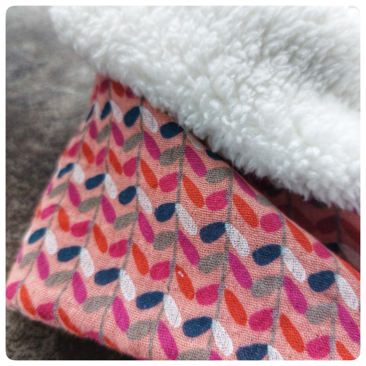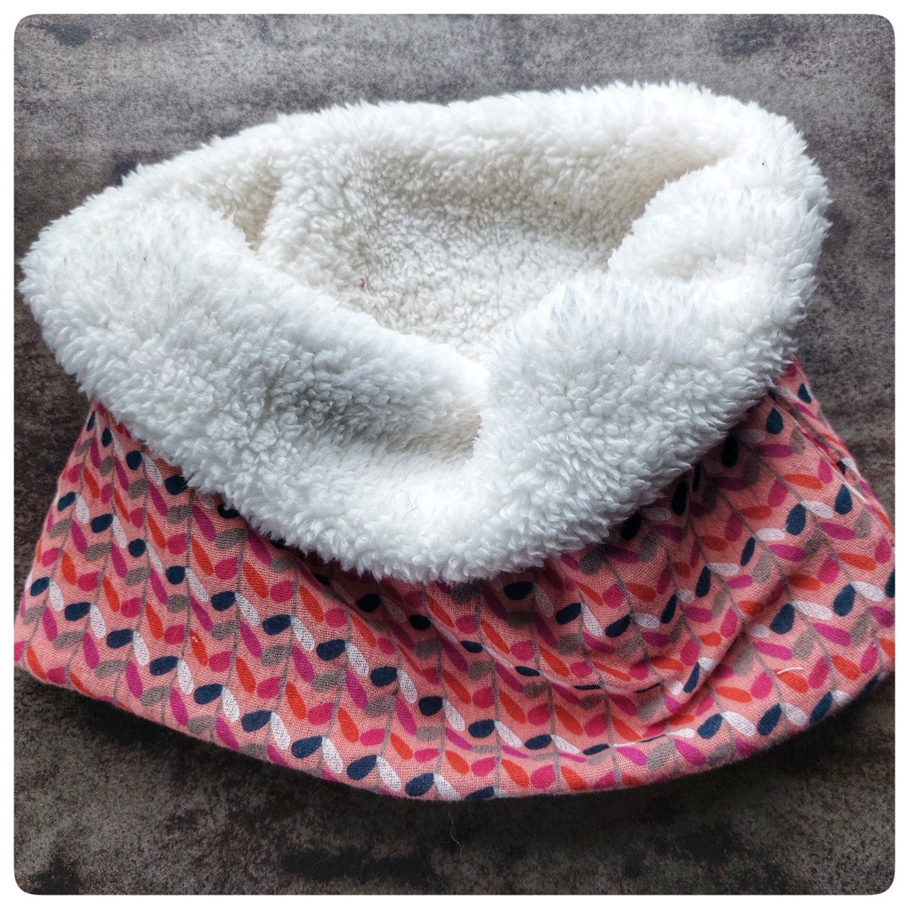 Snood pour enfant en tissu gaz de coton rose et fourrure blanche